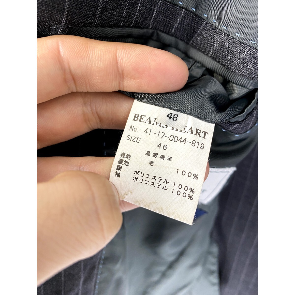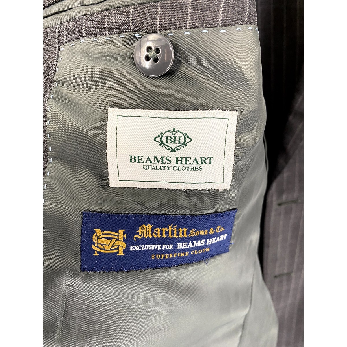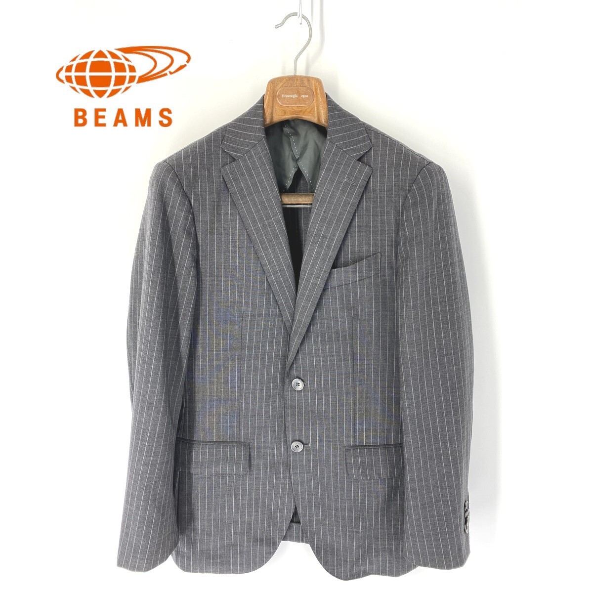 A6266/極美品 春夏 背抜き BEAMS HEART ビームスハート Martin Sons&Co ウール ストライプ テーラード シングル2Bジャケット46灰色/メンズ