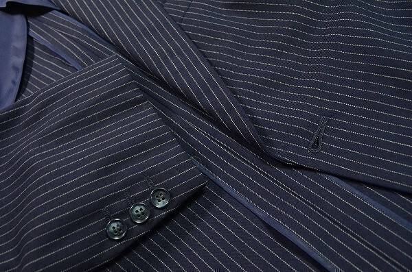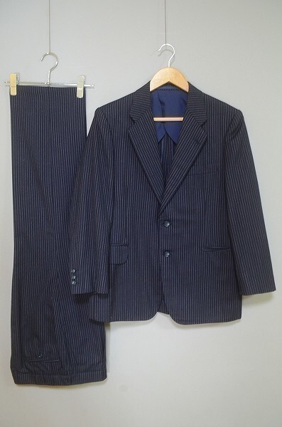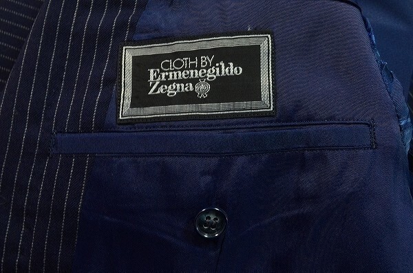A1885/極美品 春夏 背抜き Ermenegildo Zegna ゼニア ウール ストライプ シングル2Bスーツ ジャケット セットアップ 上下46 48 濃紺/メンズ