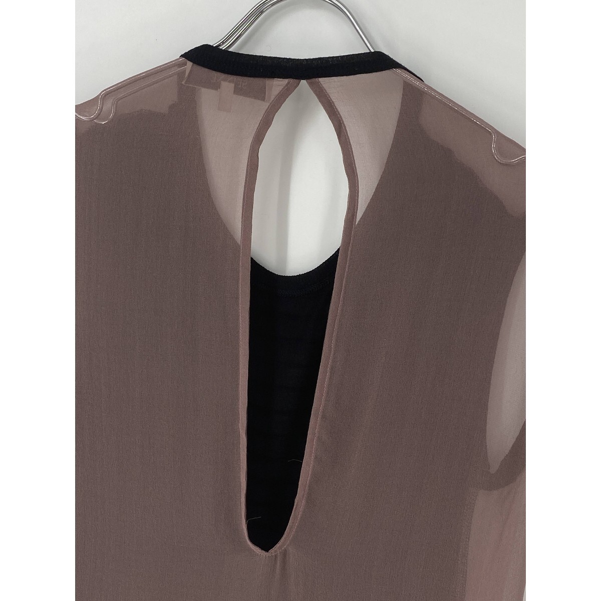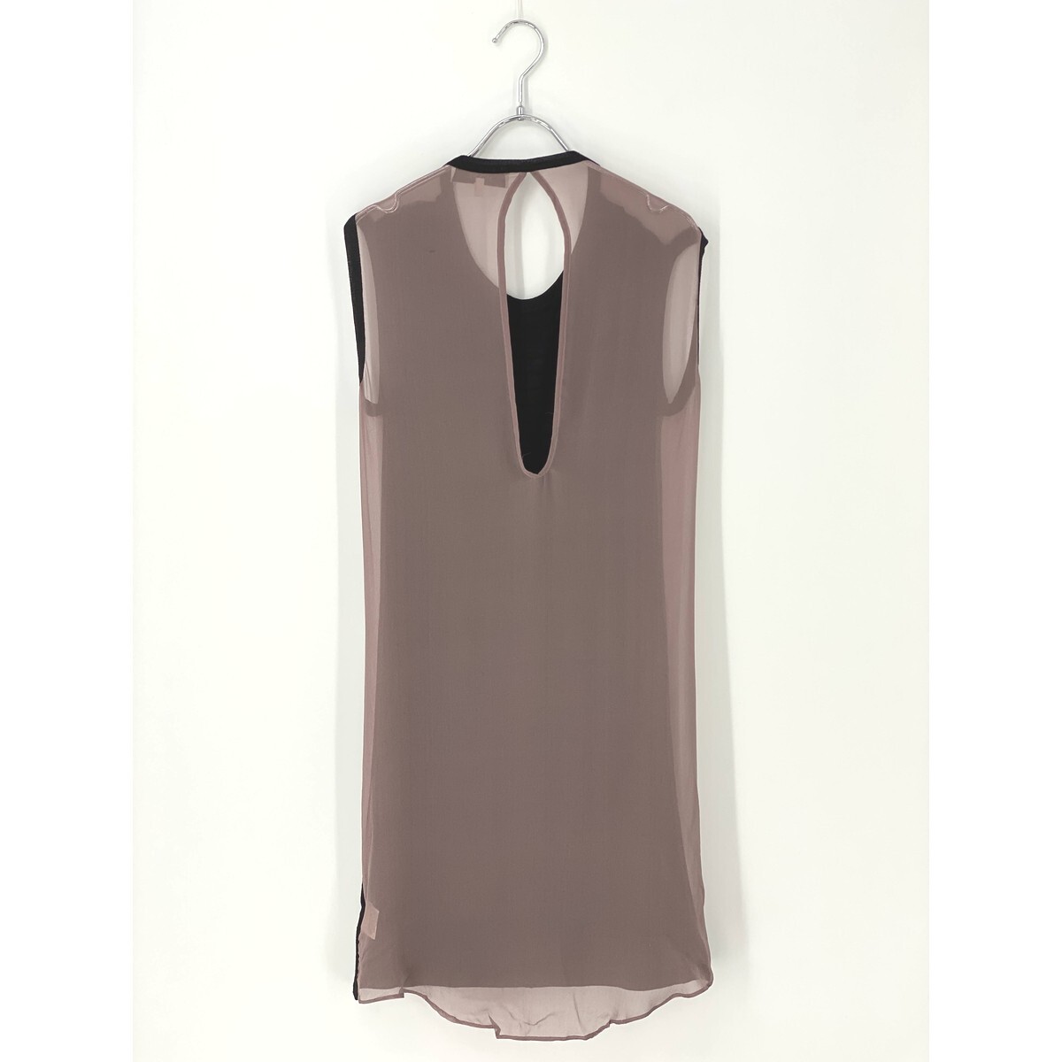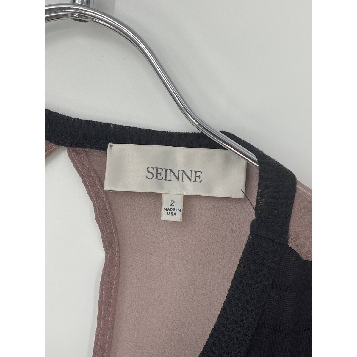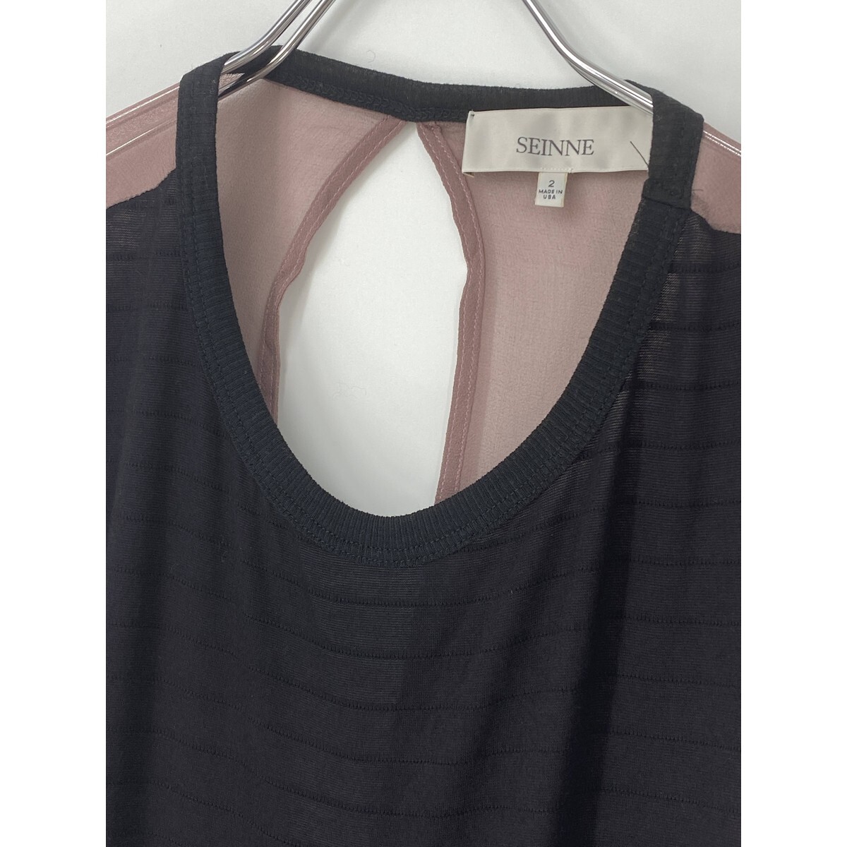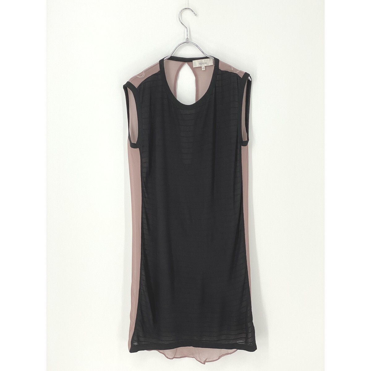 A7827/極美品 春夏 SEINNE BEAMS ビームス レーヨン シルク ノースリーブ ドレス バイカラー ミモレ丈 ワンピース 2 XS程 黒/レディース
