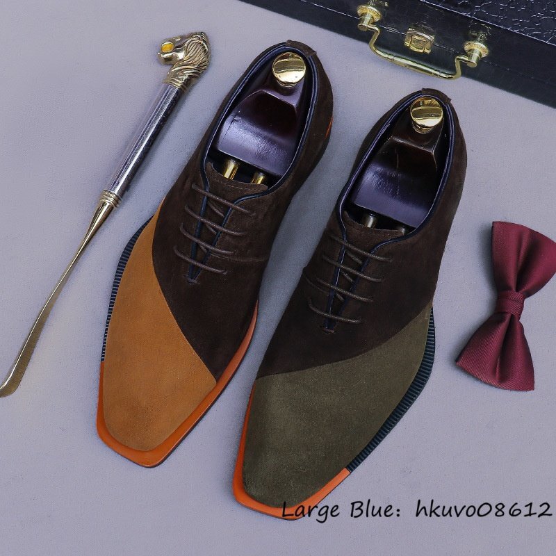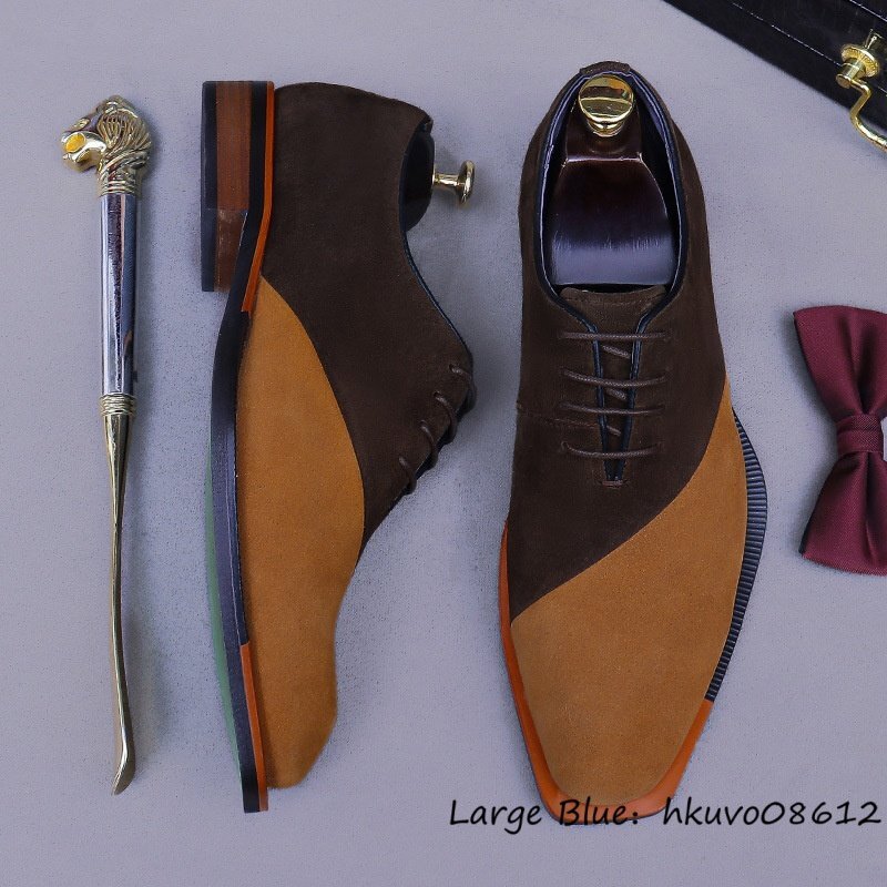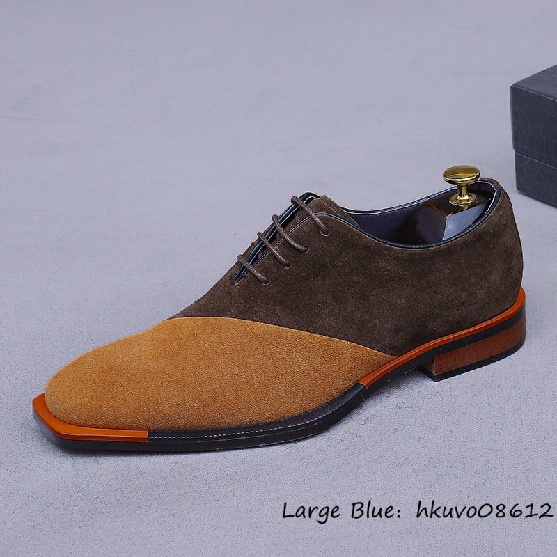 超美品■本革 レザーシューズ メンズ ビジネスシューズ 紳士靴 職人手作り 牛革 スエード革 切替 革靴 イギリス風 通勤 ブラウン 24.5cm
