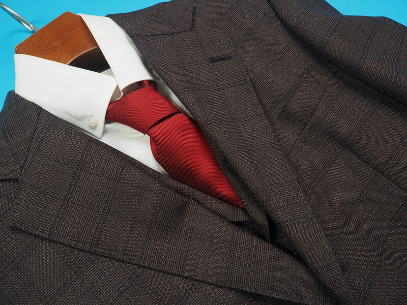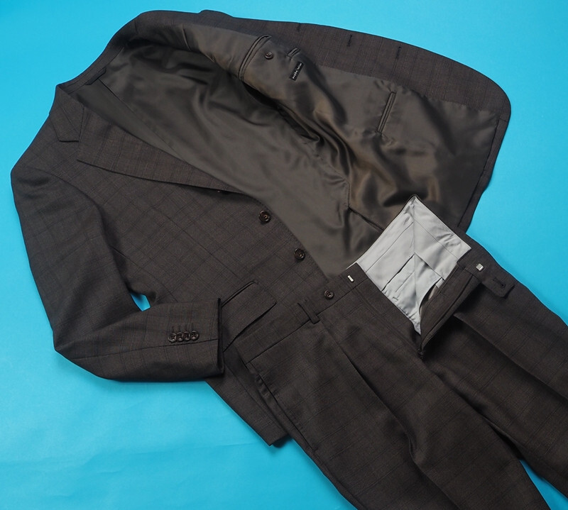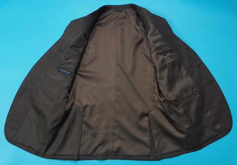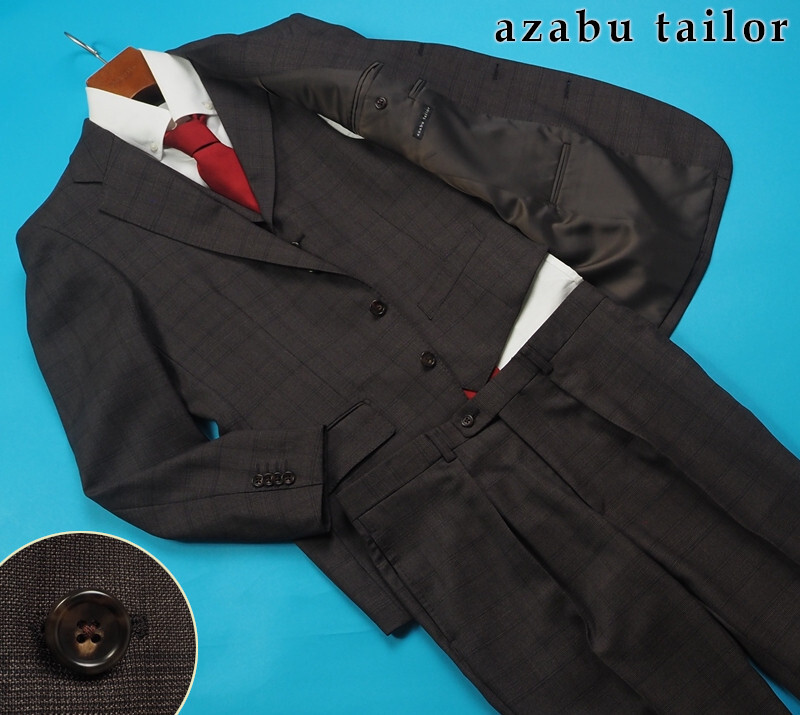 新品サンプル azabu tailor 麻布テーラー 秋冬『WORLD TRAVELER 国産生地』微起毛 チェック柄 スリーピーススーツ 46A(A5)茶 0927-056