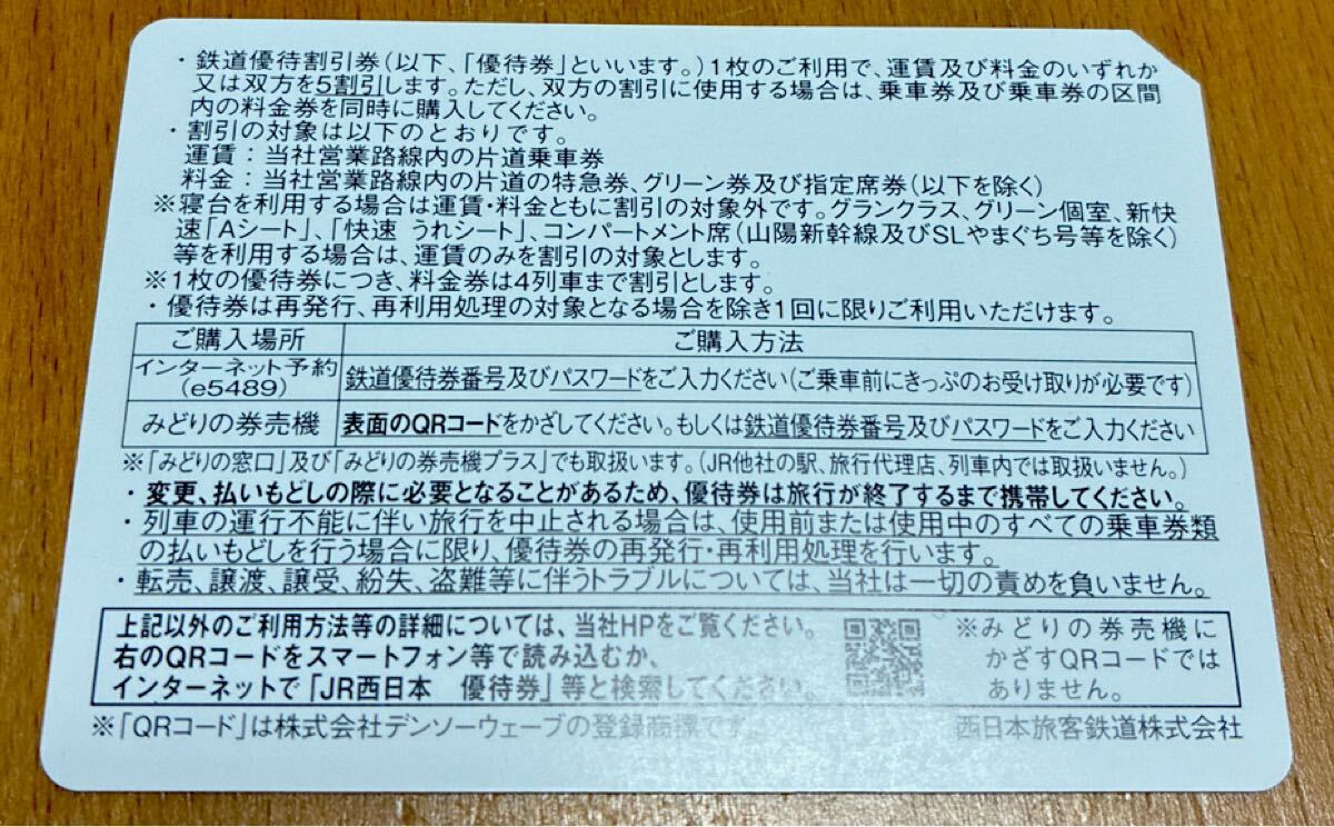 割引:JR西日本の乗車券、グリーン券及び指定席券を