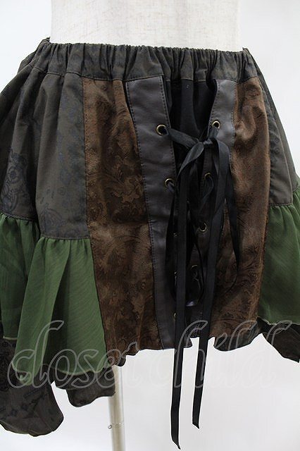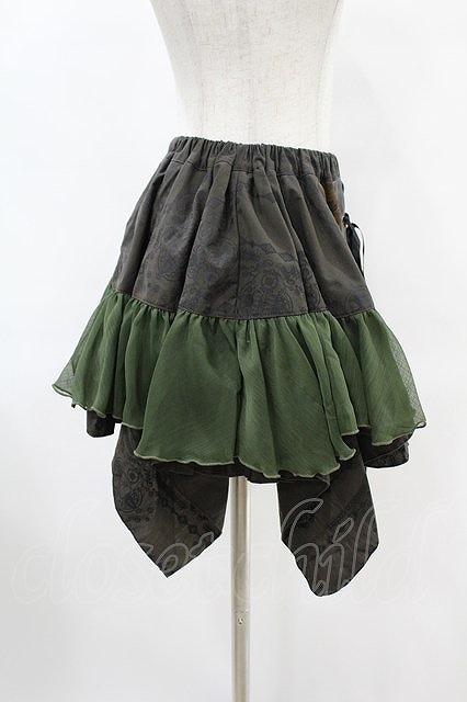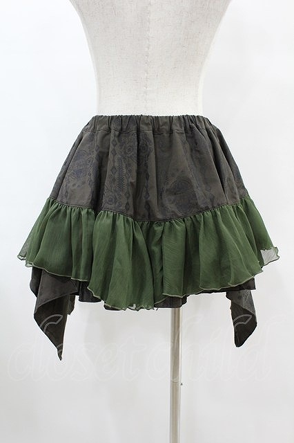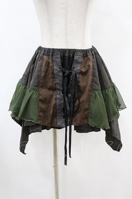 STEAM / イレギュラーフリルミニスカート 茶×カーキ H-25-10-01-014-HN-SK-KB-ZH
