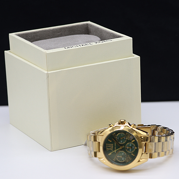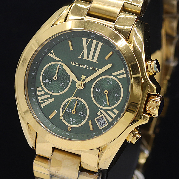 1円 箱付 稼働 美品 マイケルコース クロノグラフ MK-7257 QZ グリーン文字盤 メンズ腕時計 1927000 10NGB MST