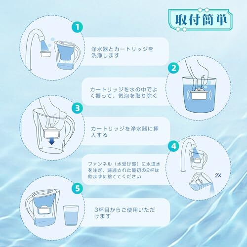 【簡単な取り付け】カートリッジの取り付けや取り外しが簡単で、面倒な作業は必要ありません、忙しい日常の中でも手軽に新鮮な水が楽しめます