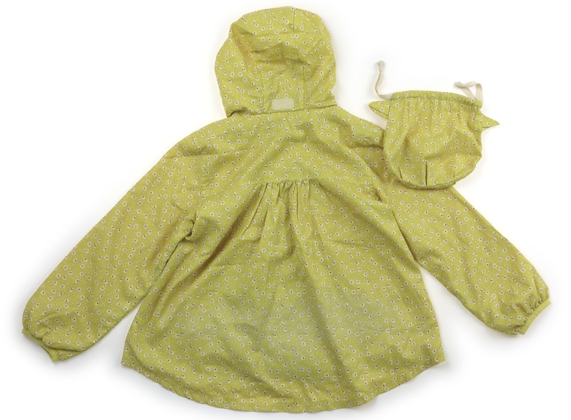 ポリエステルのシャカシャカ生地です。袖口に毛玉と、背中に糸のひっかけ傷がありますが、穴は開いていません。メッシュ生地の裏地がついています。収納袋つき。