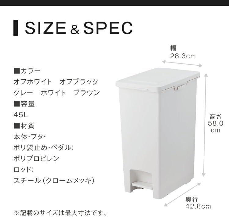 アスベル フタ付きゴミ箱 エバンペダル45SD 軽いペダル 45L 白 衛生的 A6324