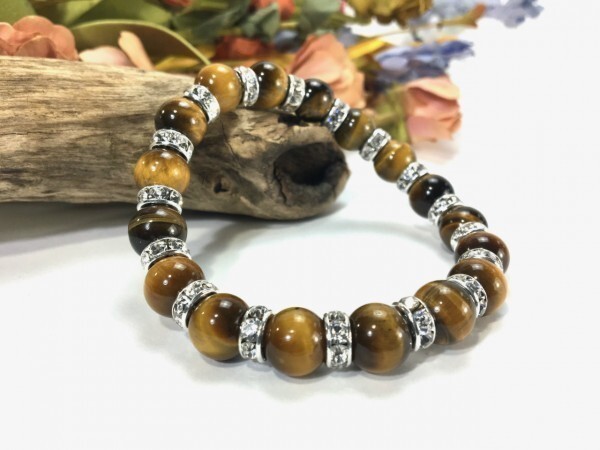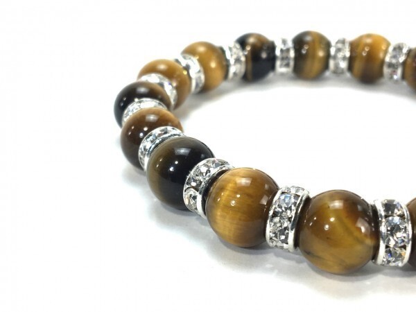 こちらは、10mm玉のタイガーアイを使用したパワーストーンブレスレットです。間にはロンデルを挟み高級感あるブレスレットに仕上げています。石大きさは腕にも馴染みやすいように10mm玉を使用して、サイズは内径約18cmです。(サイズ調節も無料で承っています。サイズ変更の場合は落札後、取引ナビにてご一報くださいませ。) 数に限りがございますので気になる方はお早めにどうぞ。