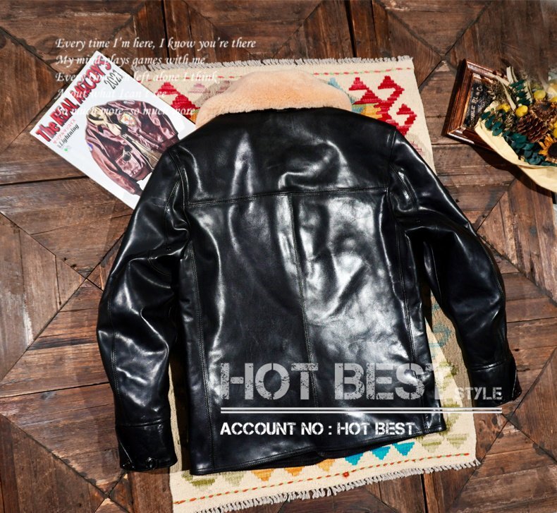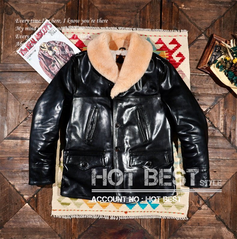 1.5mm 黒芯ホースハイド 30's スイッチヤードコート レザージャケット カーコート ブレーキマン ムートン 羊毛 馬革 Y1264/3XL