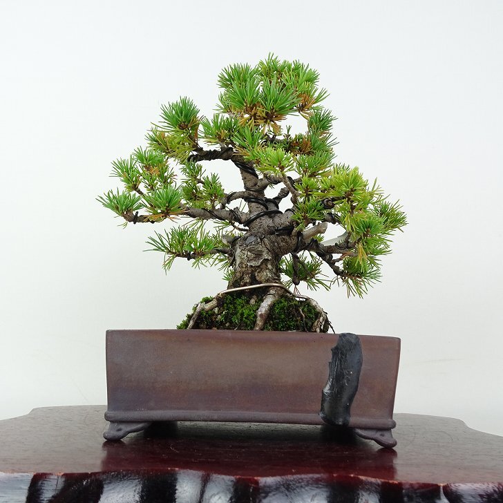 ■植物ですので撮影時期や季節によって剪定などの手入れにより写真から変化がございます。撮影日をご確認のうえ、ご注文ください。 【五葉松盆栽】 日本固有のマツであり、平安時代から観賞用として神社仏閣などの庭園に植栽されています。銀色がかった葉が美しく成長が遅い上、木質が柔軟で枝を曲げやすいため、盆栽に使われることも多い。樹皮は暗灰色で、老木になると裂片がうろこ状に剥がれ落ちます。 |
