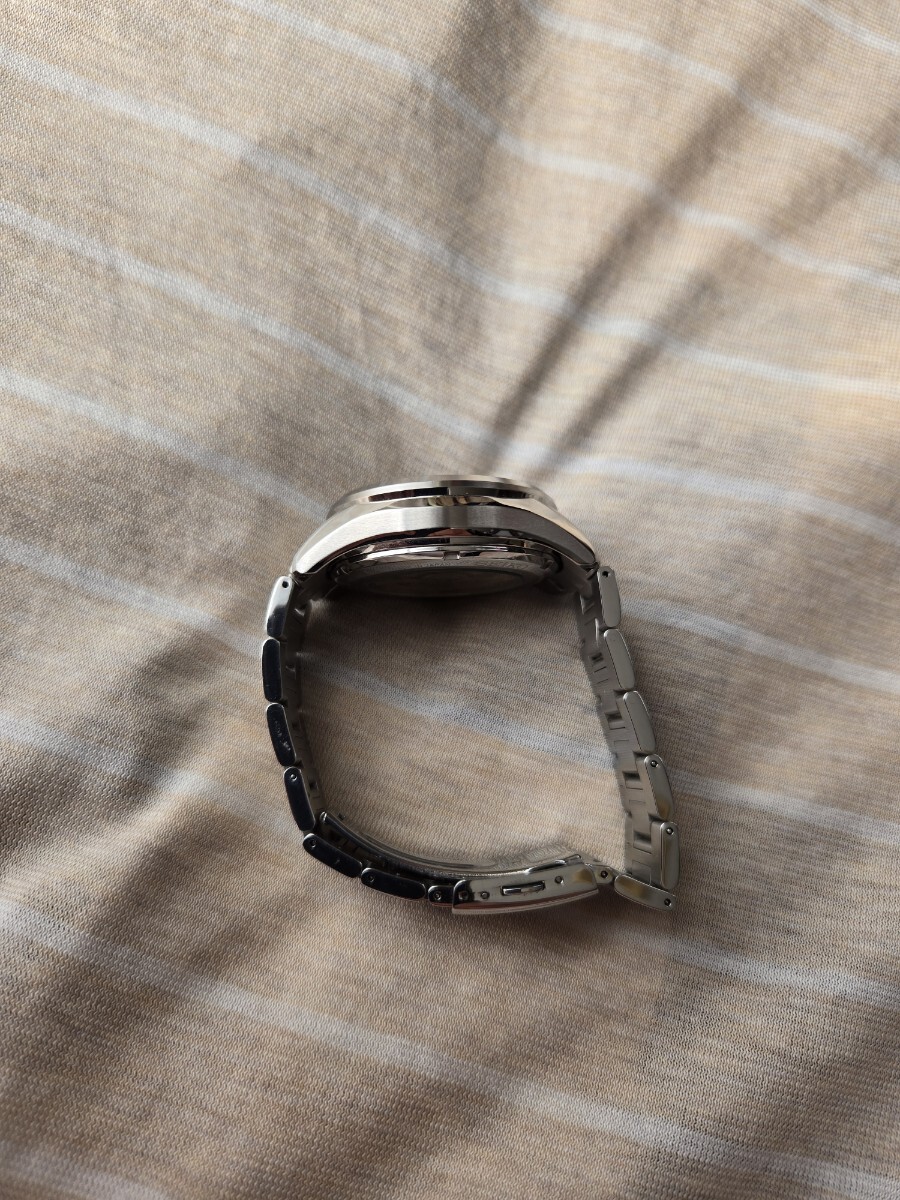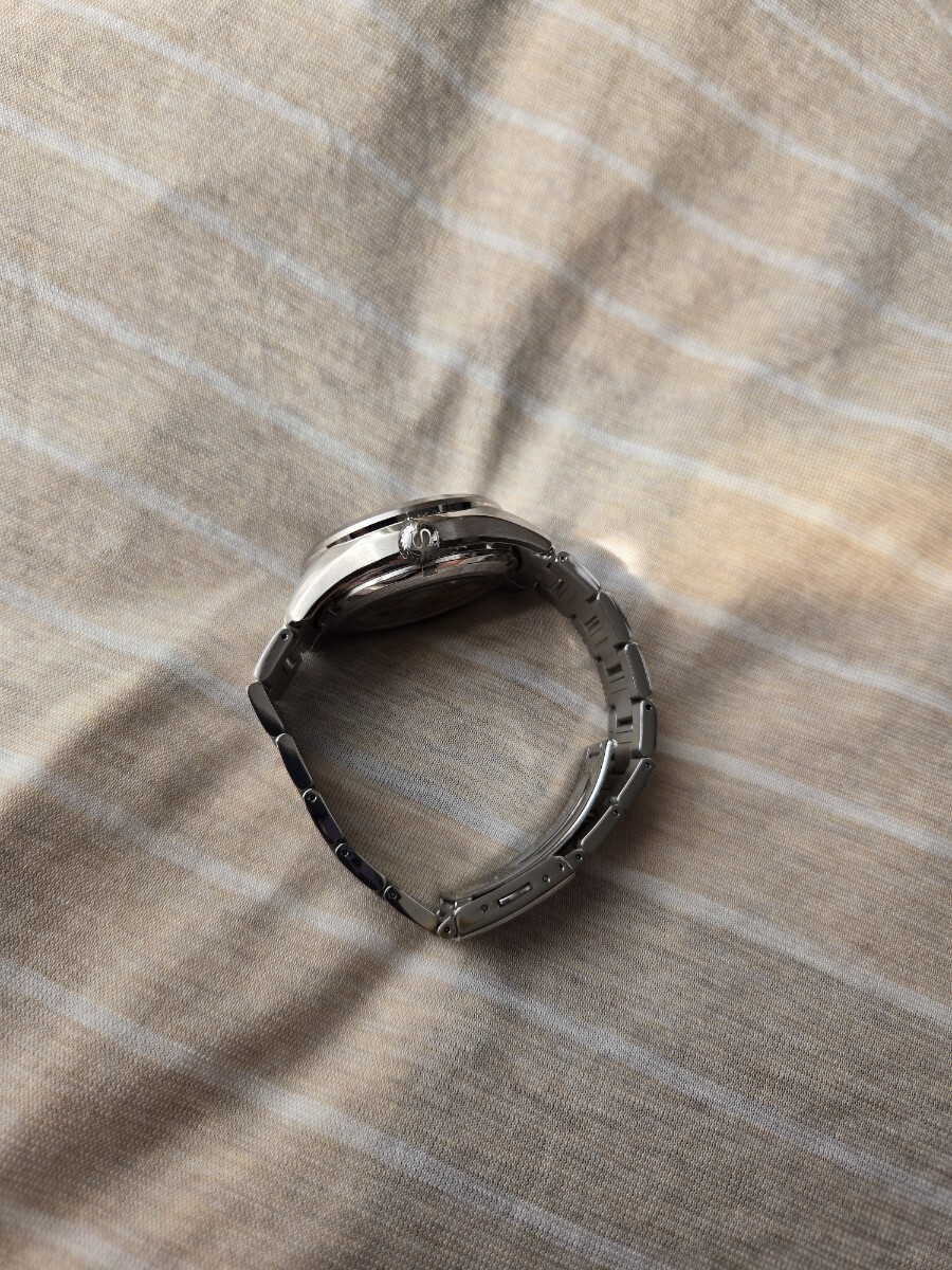 本体は、使用に伴う擦れなど有りますが、概ね美品と思います。腕周りは約21cm(フルコマ)、日差は−15~+15秒程度ですか、使用状況にもよりますので、保証出来ません。2022年購入ですので、オーバーホールの必要は無いと思われます。
