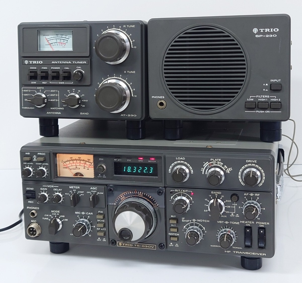 TRIO HF TRANSCEIVER TS-830V ANTENNA TUNER AT-230 外部スピーカー SP-230 3点 トリオ アマチュア無線 付属品多数 通電OK