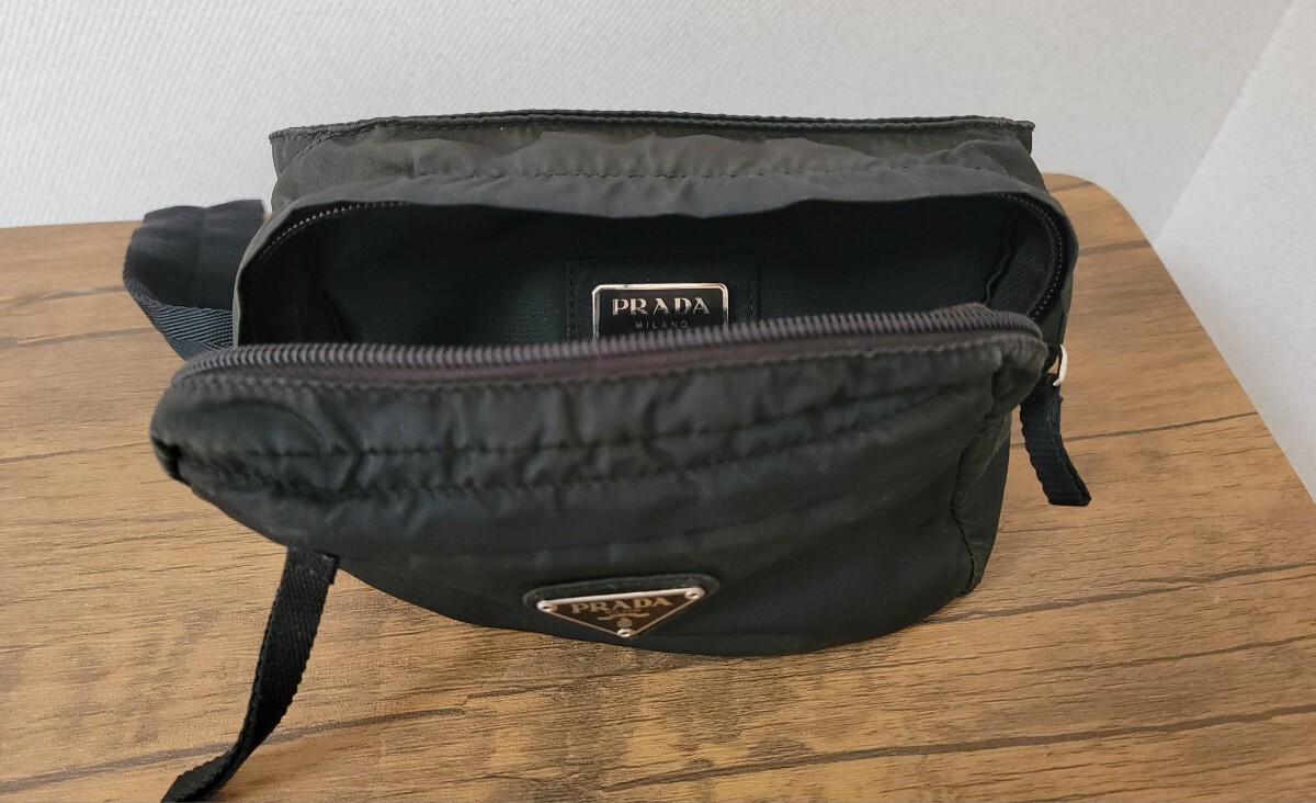 【美品】プラダ ボディバッグ小 ナイロン 黒 ウエストバッグ バムバッグ @84 PRADA