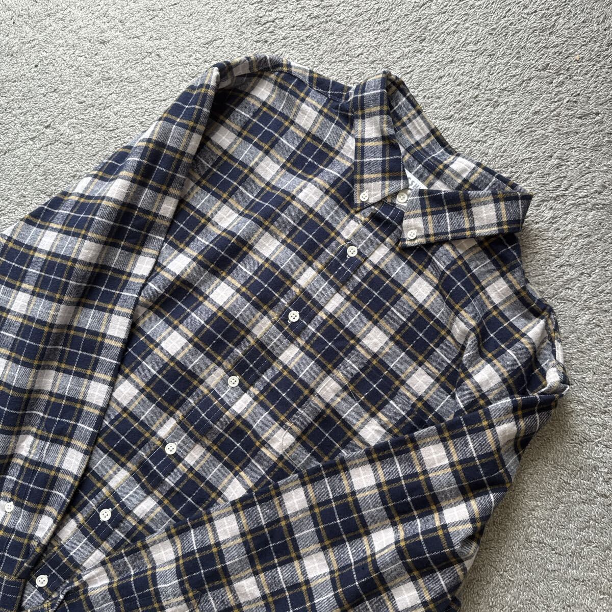 メンズ ファイバーヒート起毛チェック長袖シャツ中紺です。 未使用タグ付きです。 タグ・品質ネームにボールペンチェックがありますが着用に問題はございません。 自宅保存なので細かい事を気になさる方は ご入札を避けて下さいね♪ サイズは4Lサイズです。 平置きで身幅66センチ 着丈77センチ 素人なので多少の差はご了承ください。 品質は綿80% ポリエステル20%です。 実際のお色と画像は光の具合により 多少異なる場合があります。 | |||