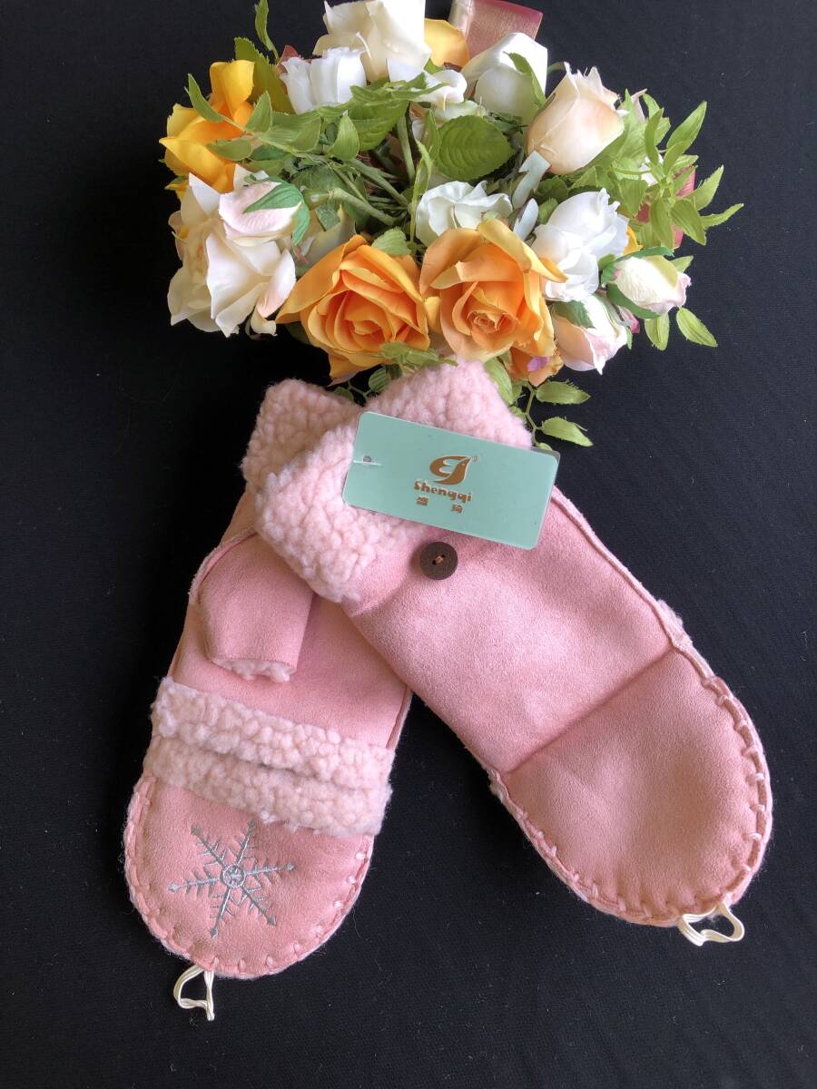 即決 新品・タグ付き 手袋 指先が出るタイプ ピンク系 送料180円 ノルディック柄