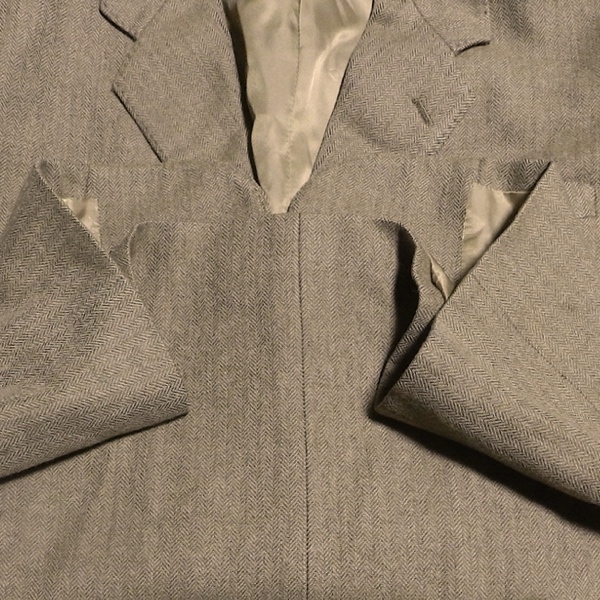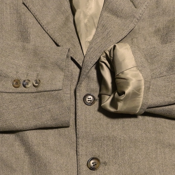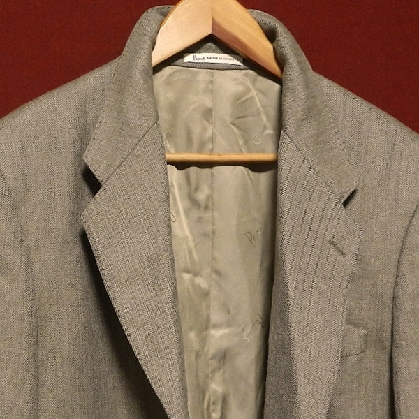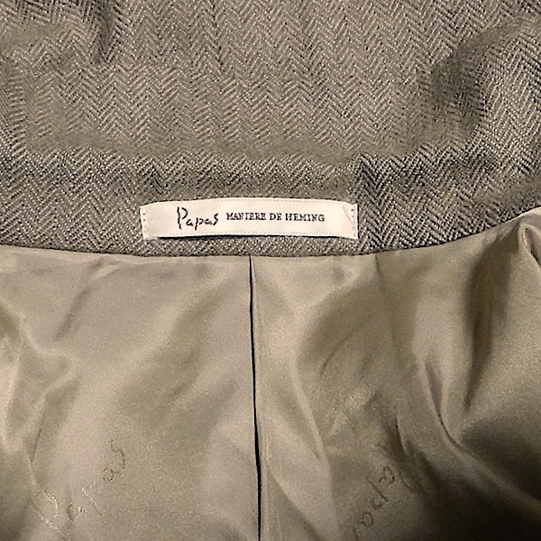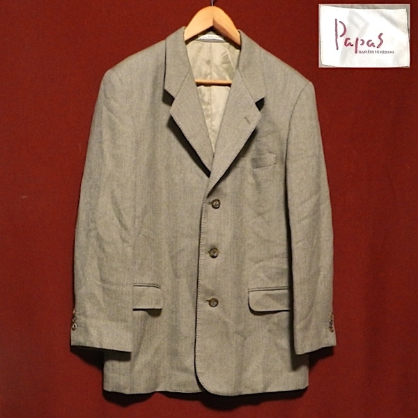 Papas パパス デザイン ソフトツイード 毛 100% ヘリンボーン 3B テーラード ブレザー ジャケット ベージュ グレー M 美品