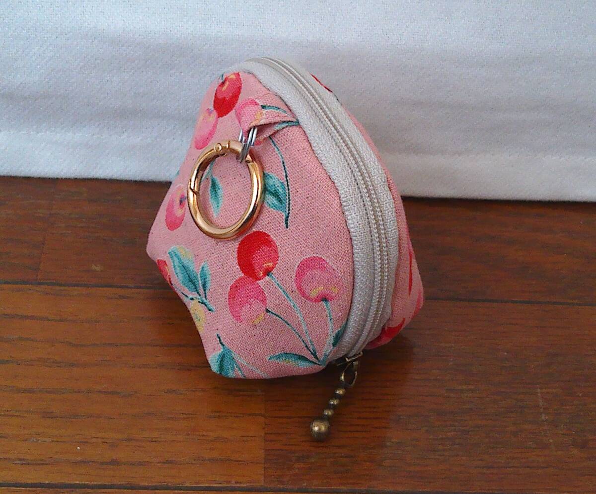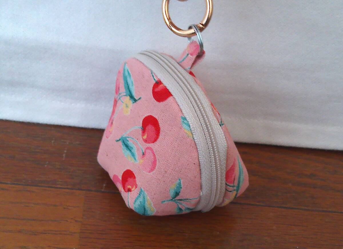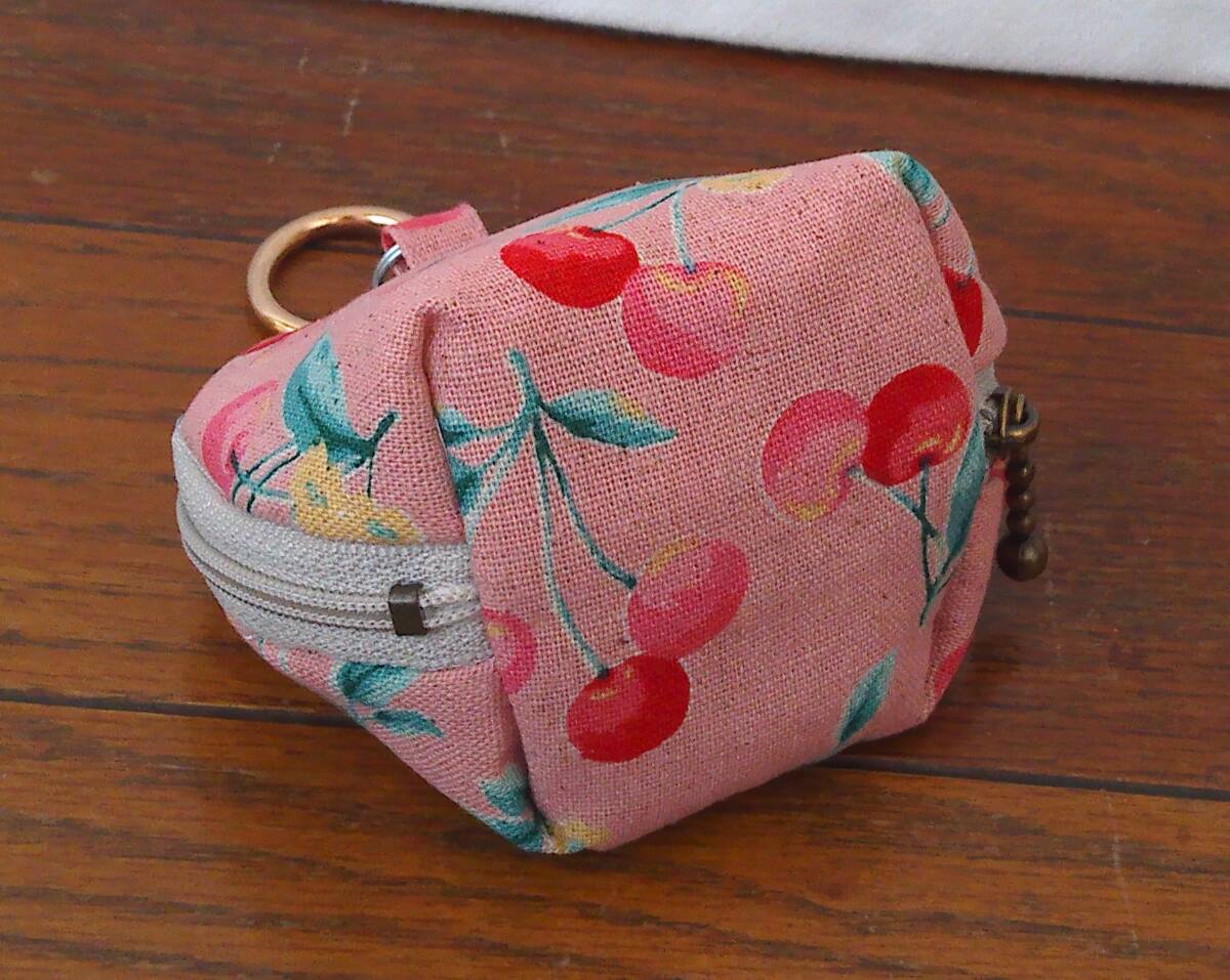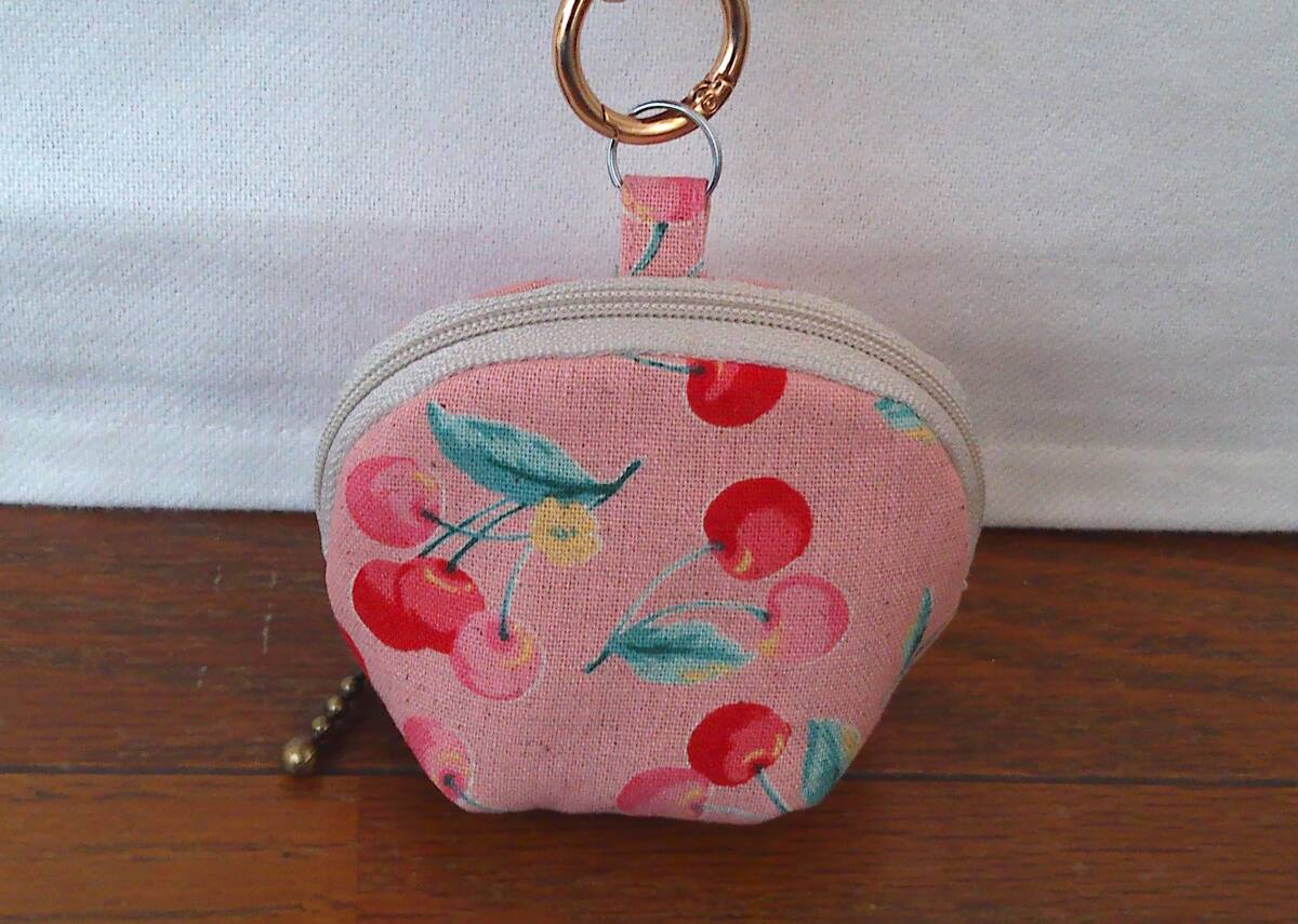 カラビナ付きミニポーチ★ダークピンク地サクランボ |