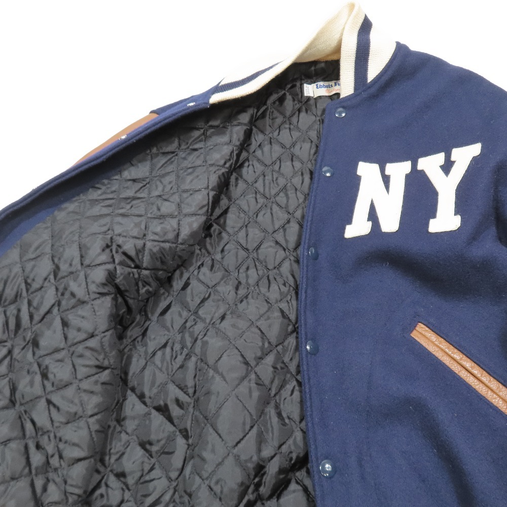 Ebbets Field Flannels エベッツフィールドフランネルズ USA製 NYロゴ ワッペン スタジャン ブルゾン ジャケット M ネイビー
