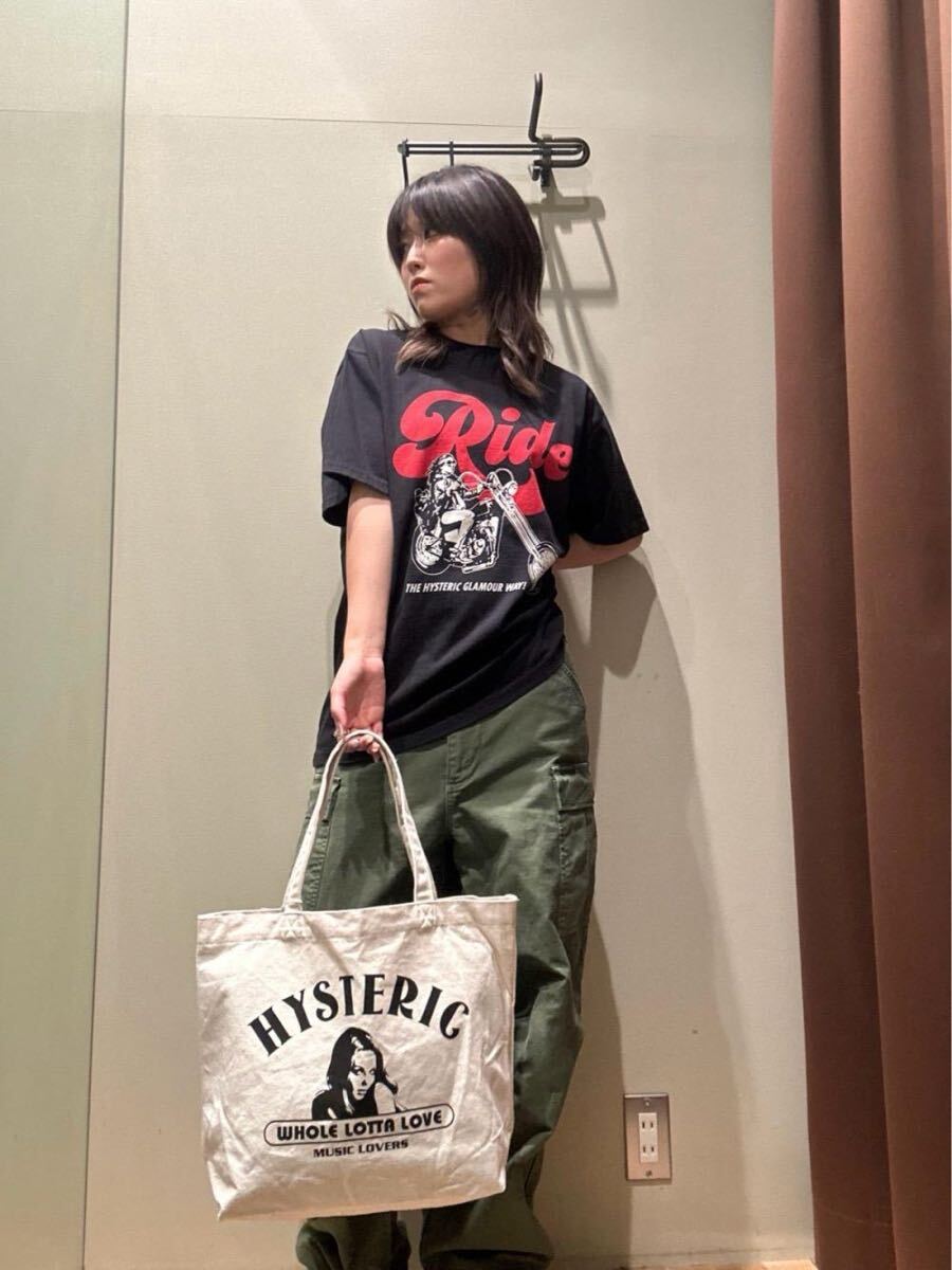 アメリカンバイクで颯爽と駆け抜けるHYSTERICWOMANが大胆に描かれたグラフィックTシャツ!