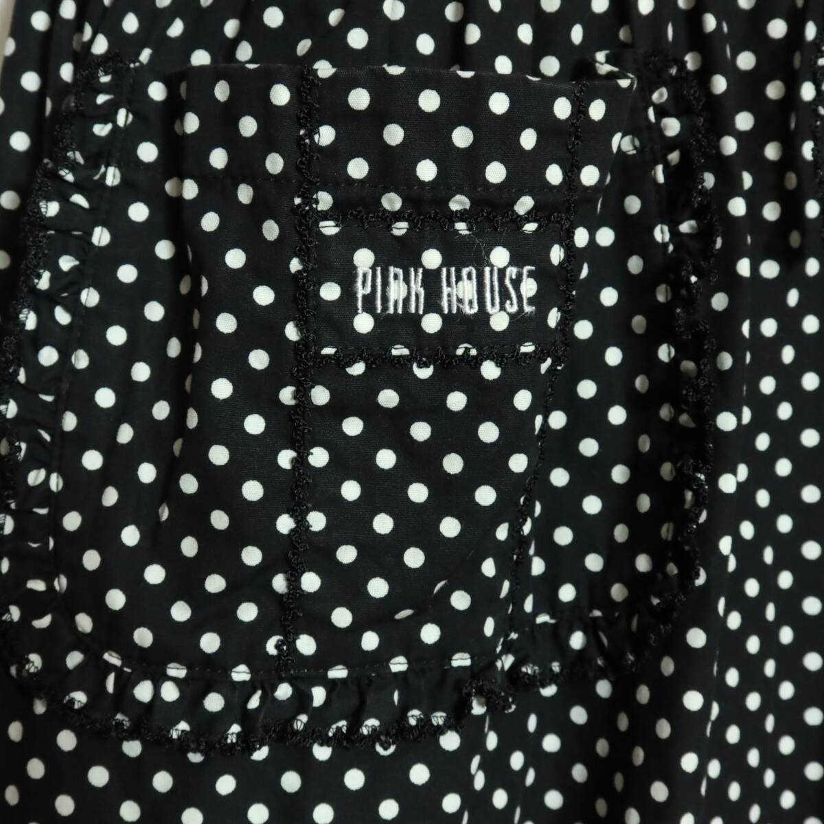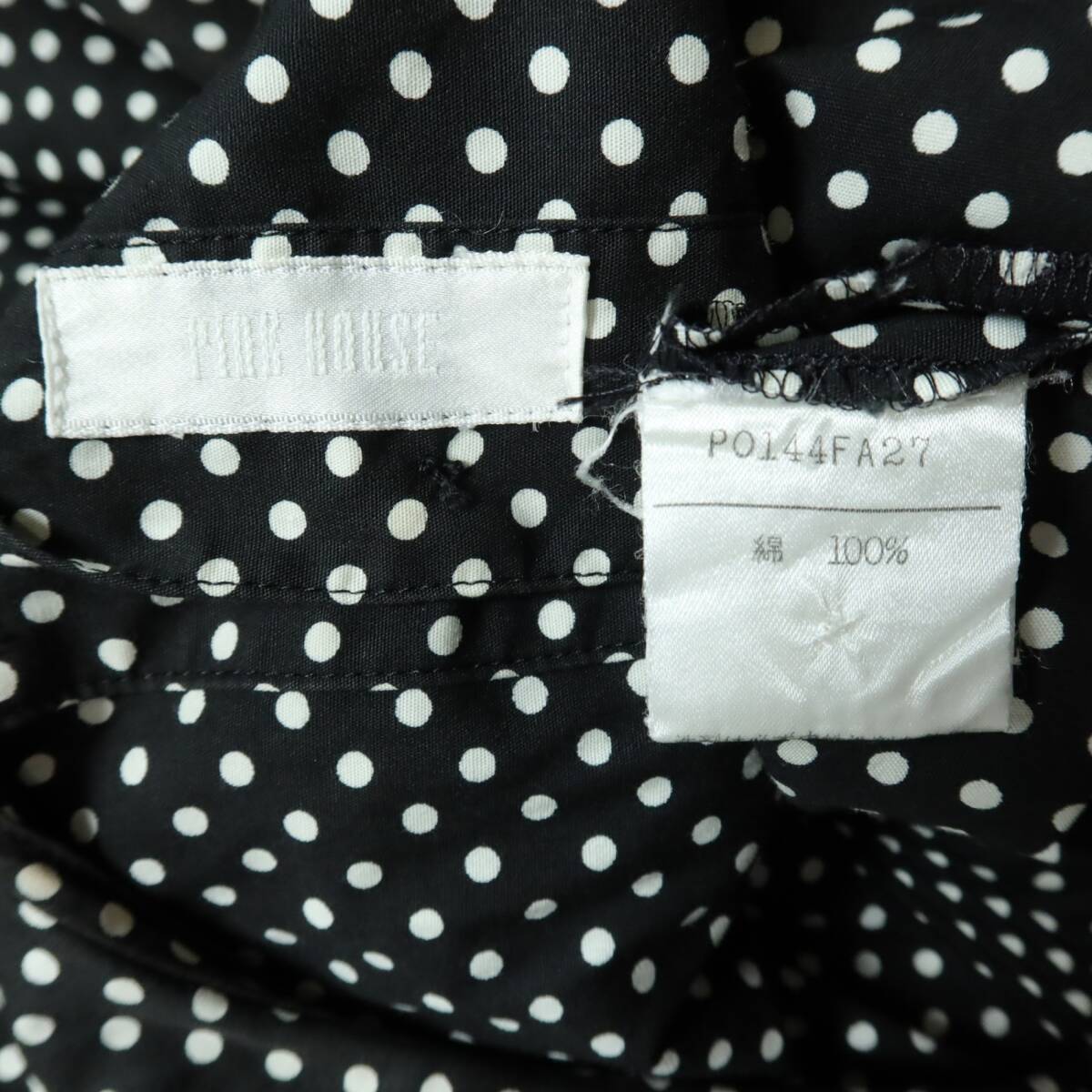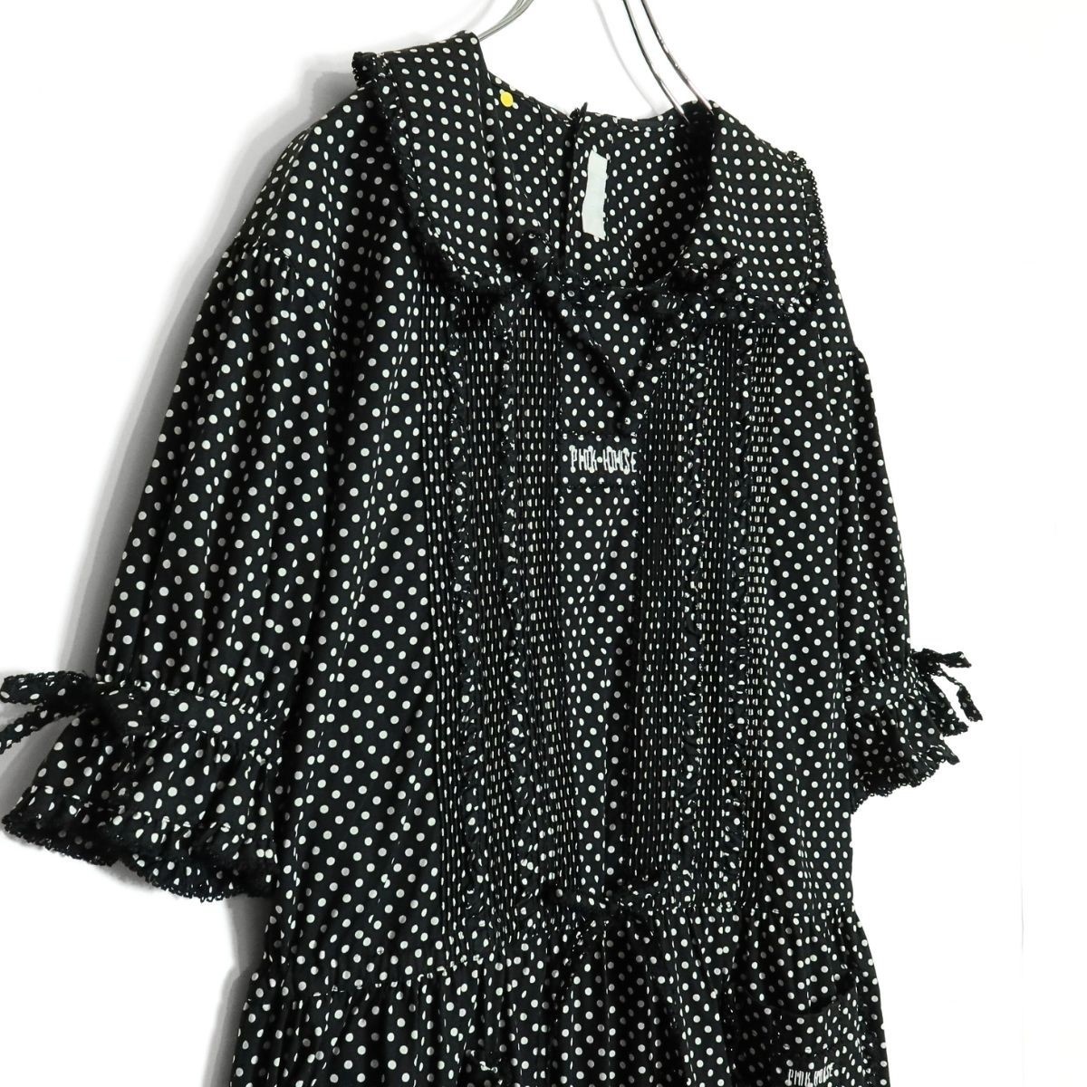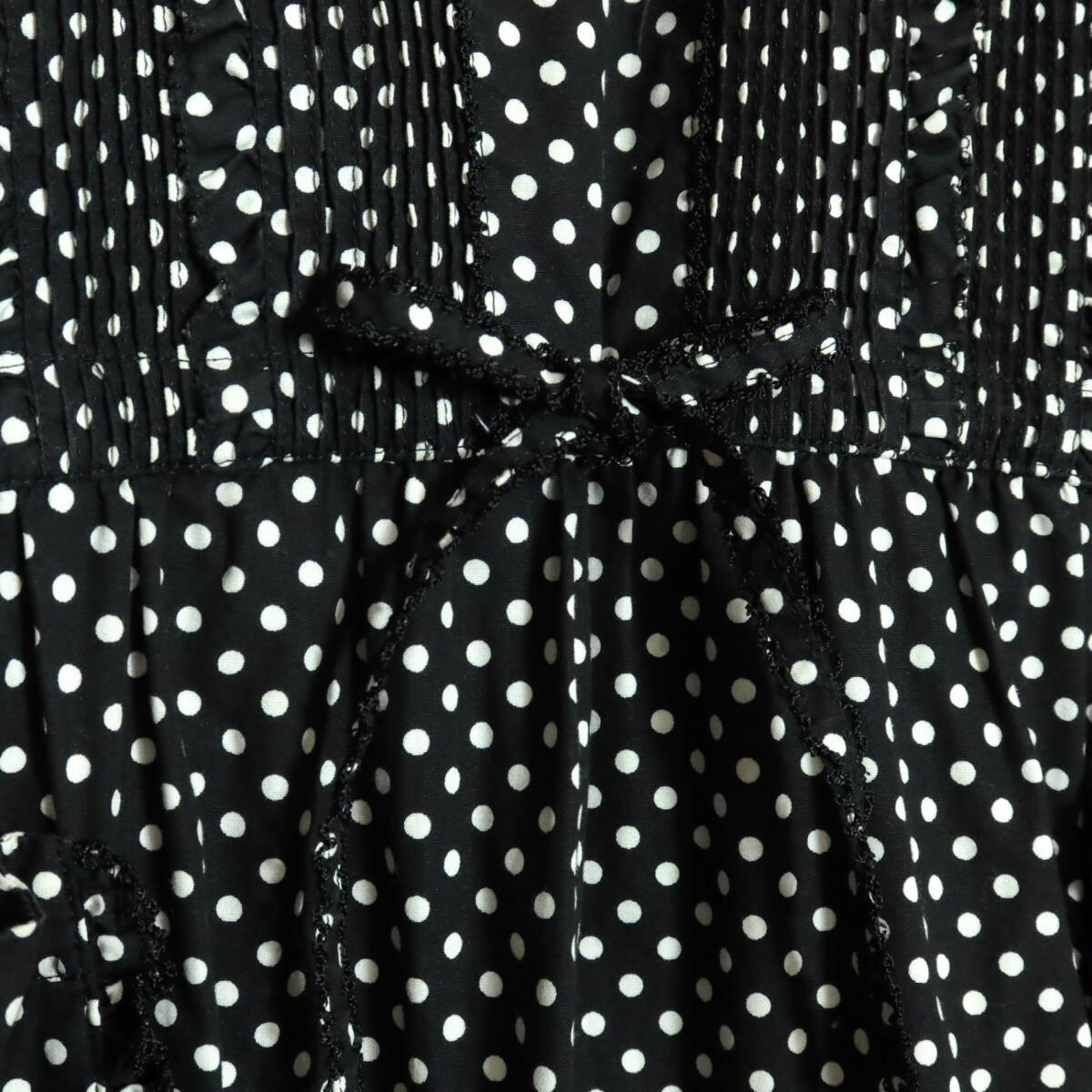 商品説明 | 【実寸約】肩幅49袖丈29バスト100ウエスト94着丈117(cm) 【サイズ表記】なし。実寸をご参照くださいませ。 【素材】 綿100% 【状態】普通の使用感のあるお品物 襟に変色感がございますそれ以外は着用感少なめのお品物です。 【デザイン】ブラック系 上品でレトロ懐かしいデザインのドット柄ワンピースです。 半袖のパフスリーブが可愛い♪ ウエストは内蔵リボンでブラウジング可能♪ バックの上半身にボタンあり 薄手/水玉・ロゴ刺しゅう/ポケットあり |
