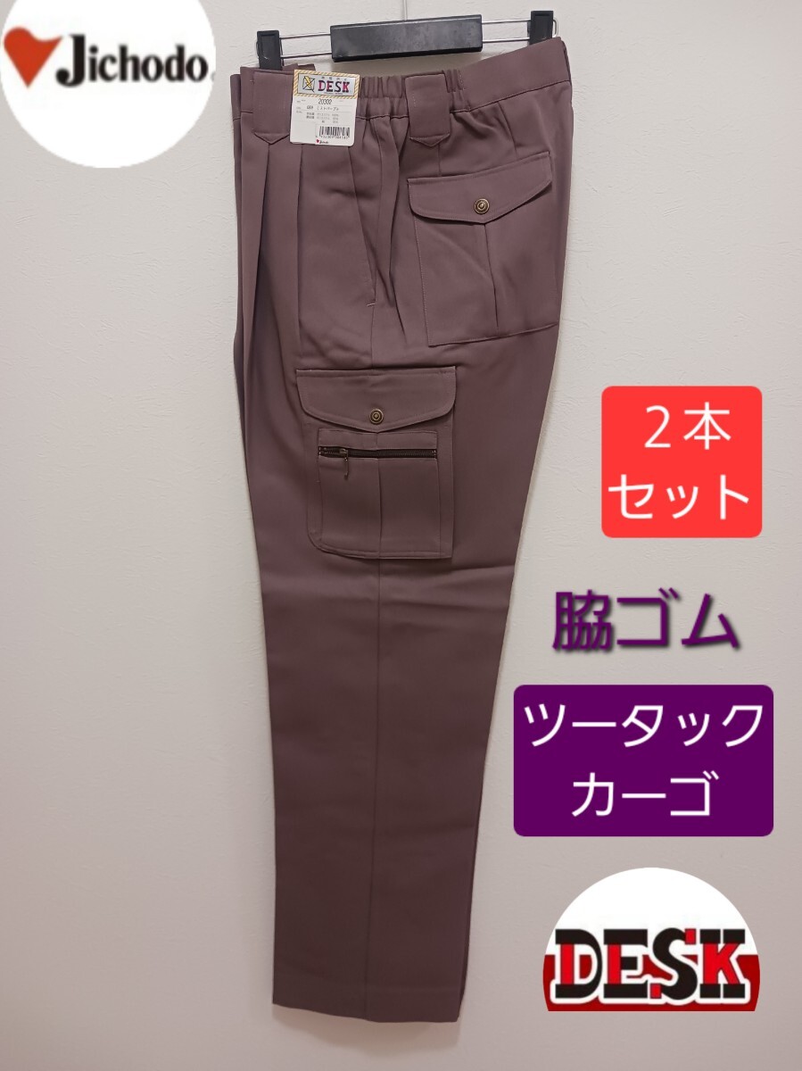 5538 自重堂 DESK 20302|秋冬 ツータックカーゴパンツ|ミストパープル|Sサイズ×2本(W70㎝~76㎝)|新品未使用|脇ゴム|作業ズボン|73㎝対応