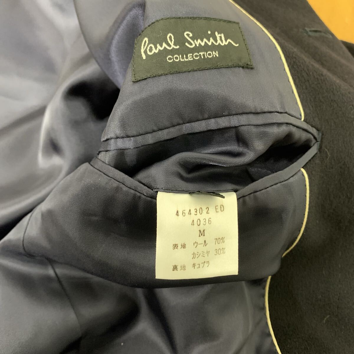 商品:Paul Smith COLLECTION ポールスミス コート アウター ネイビー 紺色 size M 日本製 ウール70 カシミヤ30 メンズ 紳士 比翼ボタン