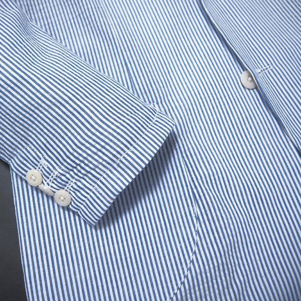 【Sheltie Club】 〈湘南の海〉をテーマとしたブランドコンセプトに沿って、マリンテイストを味付けしたシンプルなスタイルを信条とし、ラフで、気取らず、気張らない、ややゆったりとした着こなしを提案します。 サラッとしたドライな肌触りで、通気性、吸水速乾性に優れたシアサッカージャケットです。 シアサッカー独特の凹凸感により肌離れが良く、春夏シーズンに最適な爽やかさが感じられます。 着心地や肌触りにこだわってコットン100%の生地を使用し、ナチュラルでソフトな風合いが魅力です。 裏地等を使用していないアンコン仕立てなので、軽くて締めつけ感のない快適な羽織り心地に仕上がっています。 様々なコーディネートに取り入れやすいデザインで、オンオフ兼用で着用いただけます。 ご自宅で洗濯が可能なウォッシャブル製品なので、イージーケア性が高いのも嬉しいポイントです。 【デザイン】 ・裏地なし ・フロントは2つボタン ・ノーベント ・袖先は3つボタン(飾りボタン) |