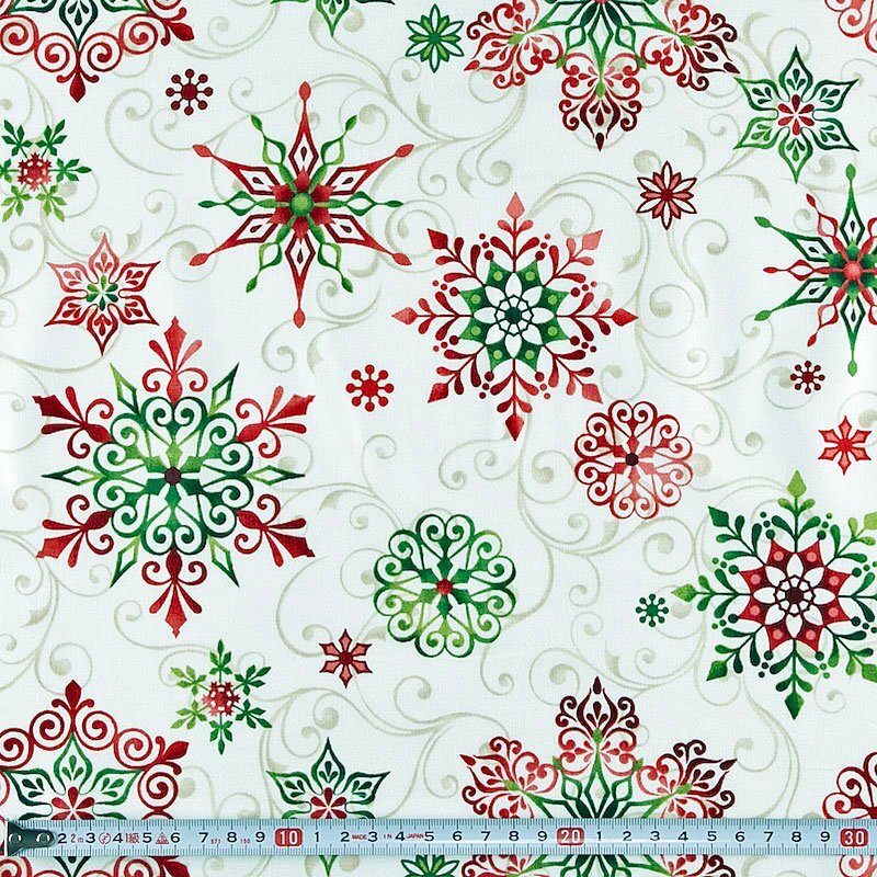 クリスマス・カラーのレッドとグリーンで色づけされた雪の結晶柄。