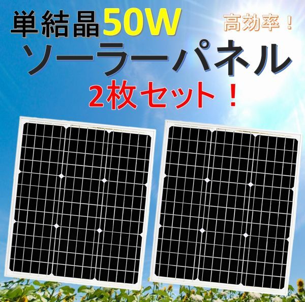 高効率 単結晶 太陽電池 ソーラーパネル 50W 2枚セット!12V用! | ||||