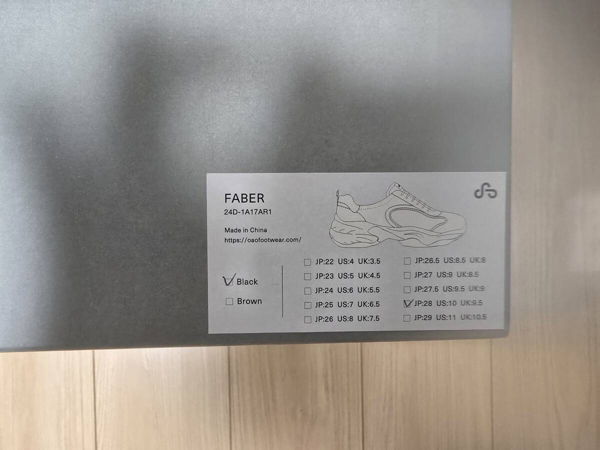 大人気OAOの新作スニーカー“FABER”です。お色は一番人気の黒でサイズはUS10(28cm程度)です。