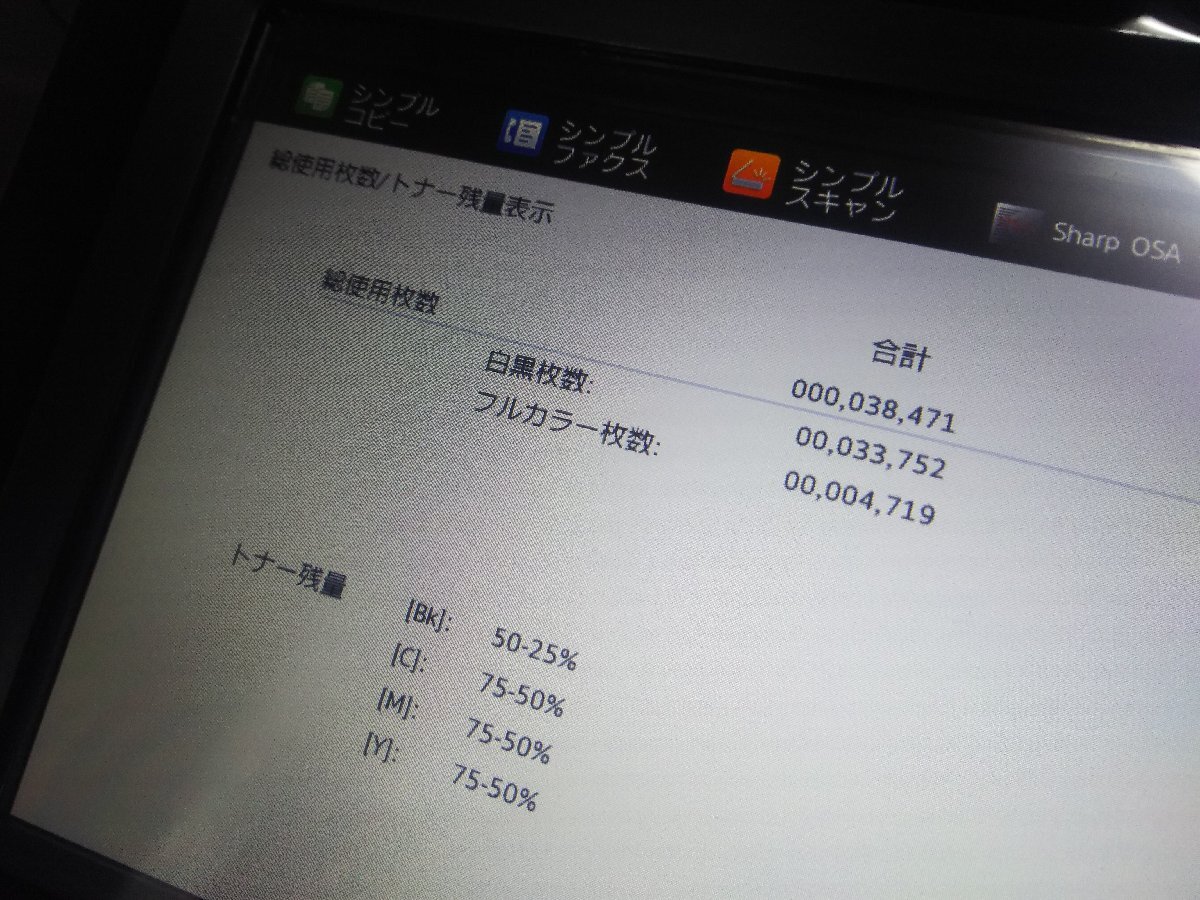 現状カウンター | 白黒枚数:33752枚 カラー枚数:4719枚 ※出荷前に動作確認を行うため、 数十枚カウンターが進む場合があります。 詳細は3枚目の写真をご確認ください。 |