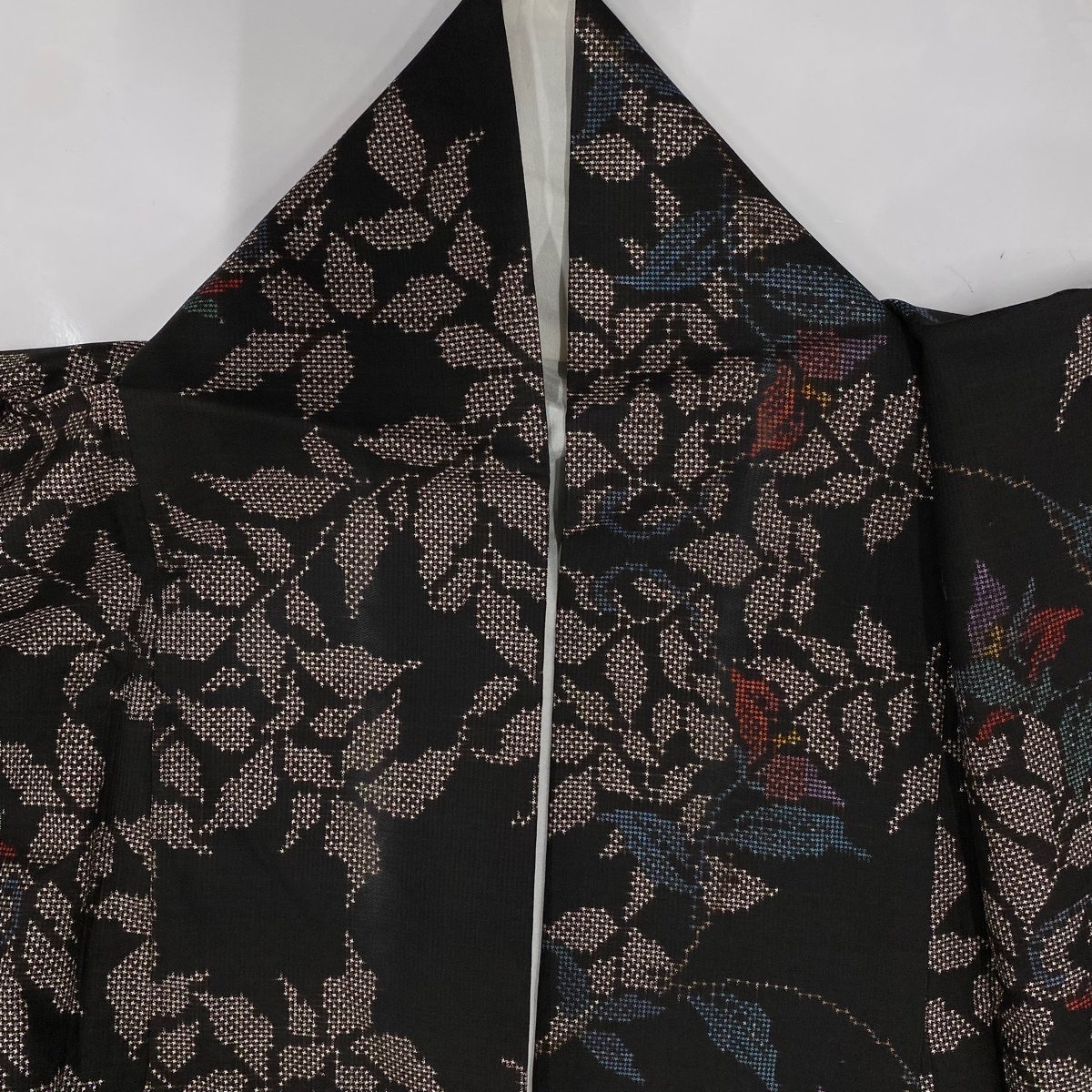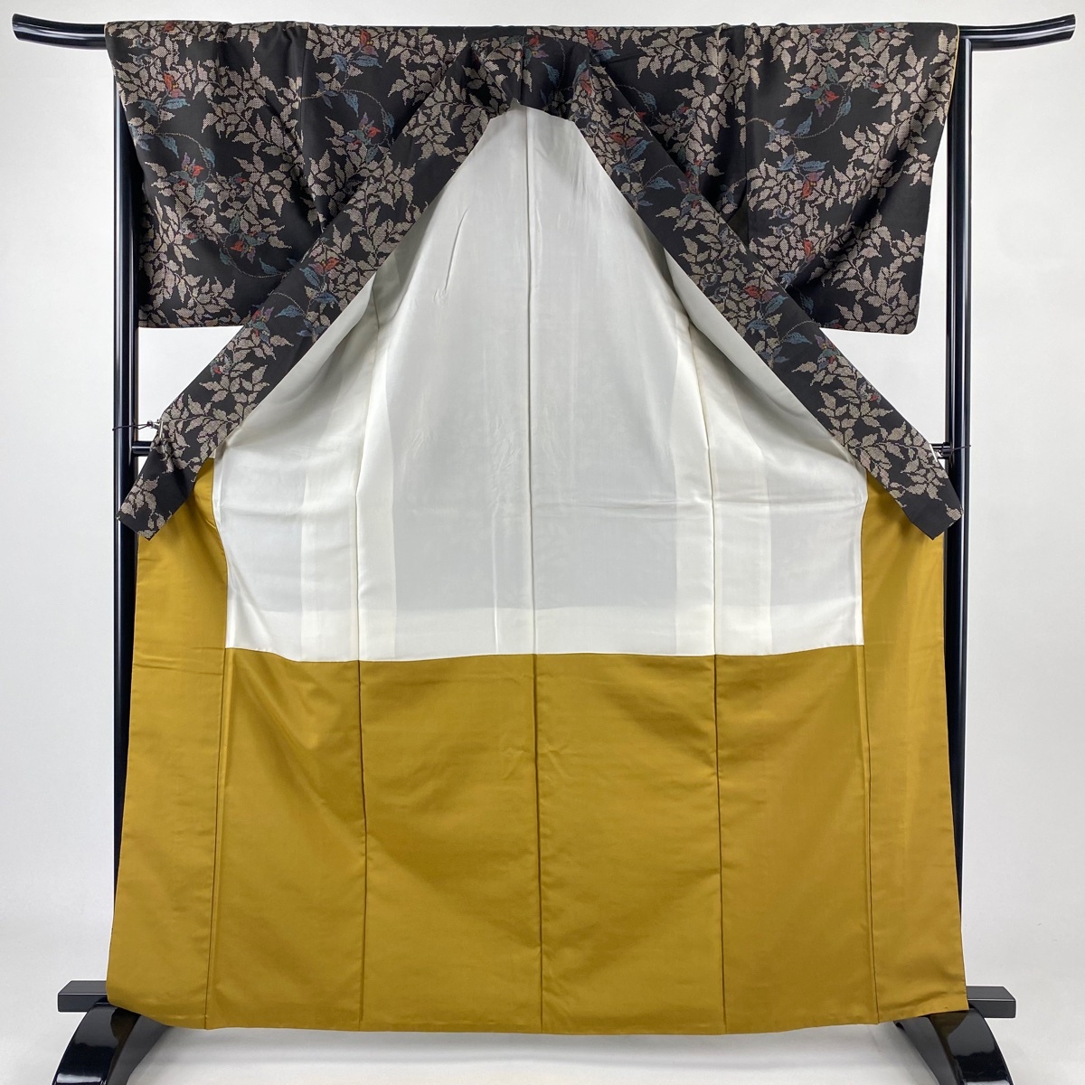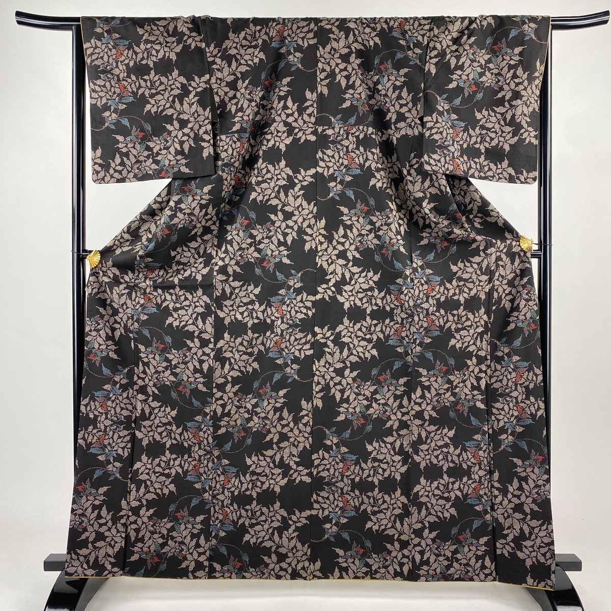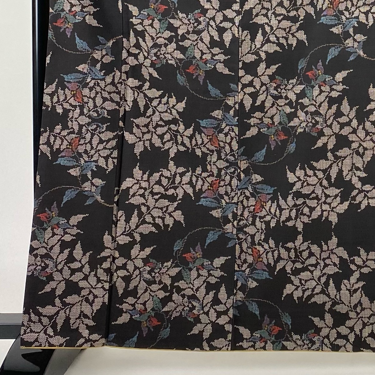 | 紬 秀品 草花 焦茶色 袷 身丈166 裄丈65 M 正絹 【中古】 |