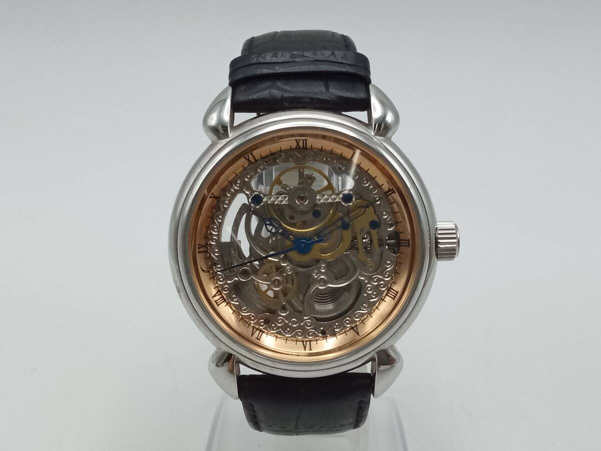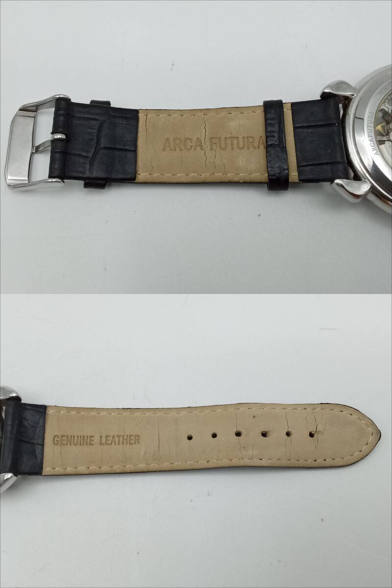T11◎【AT/稼働】ARCA FUTURA アルカフトゥーラ スケルトン 17 JEWELS 3針 自動巻き ラウンド アナログ メンズ 純正ベルト 現状品