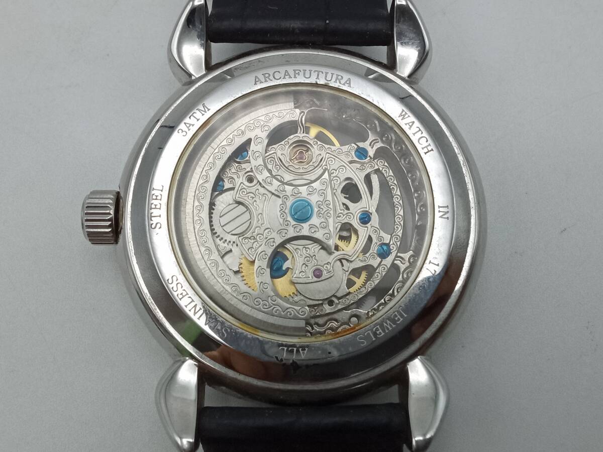 【AT/稼働】ARCA FUTURA アルカフトゥーラ スケルトン 17 JEWELS 3針 自動巻き ラウンド アナログ メンズ 純正ベルト 現状品