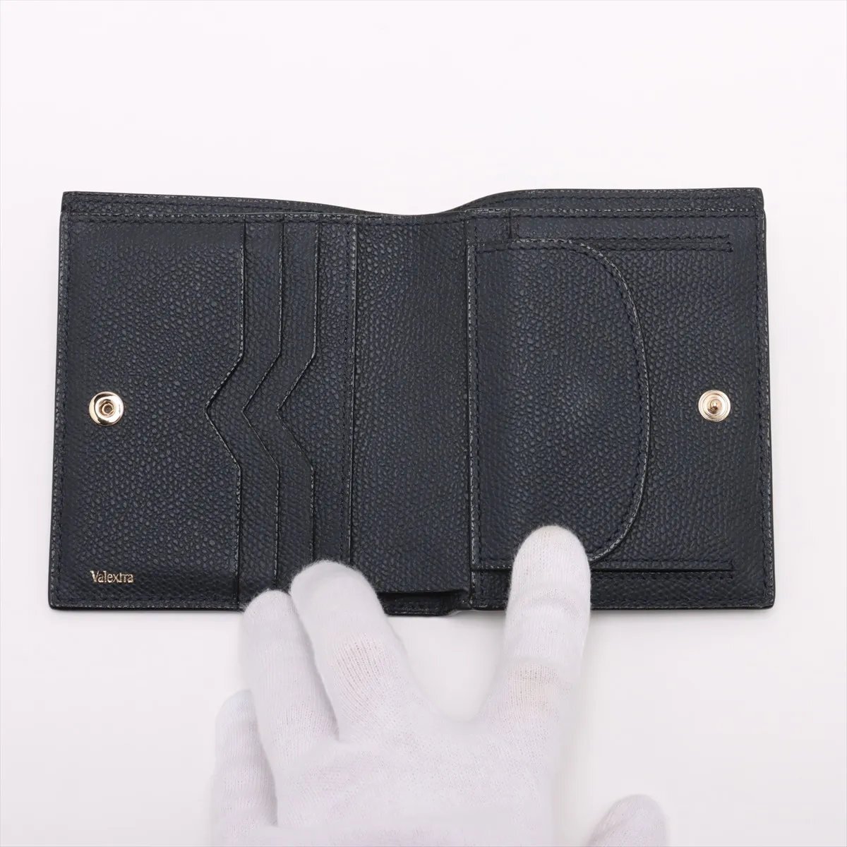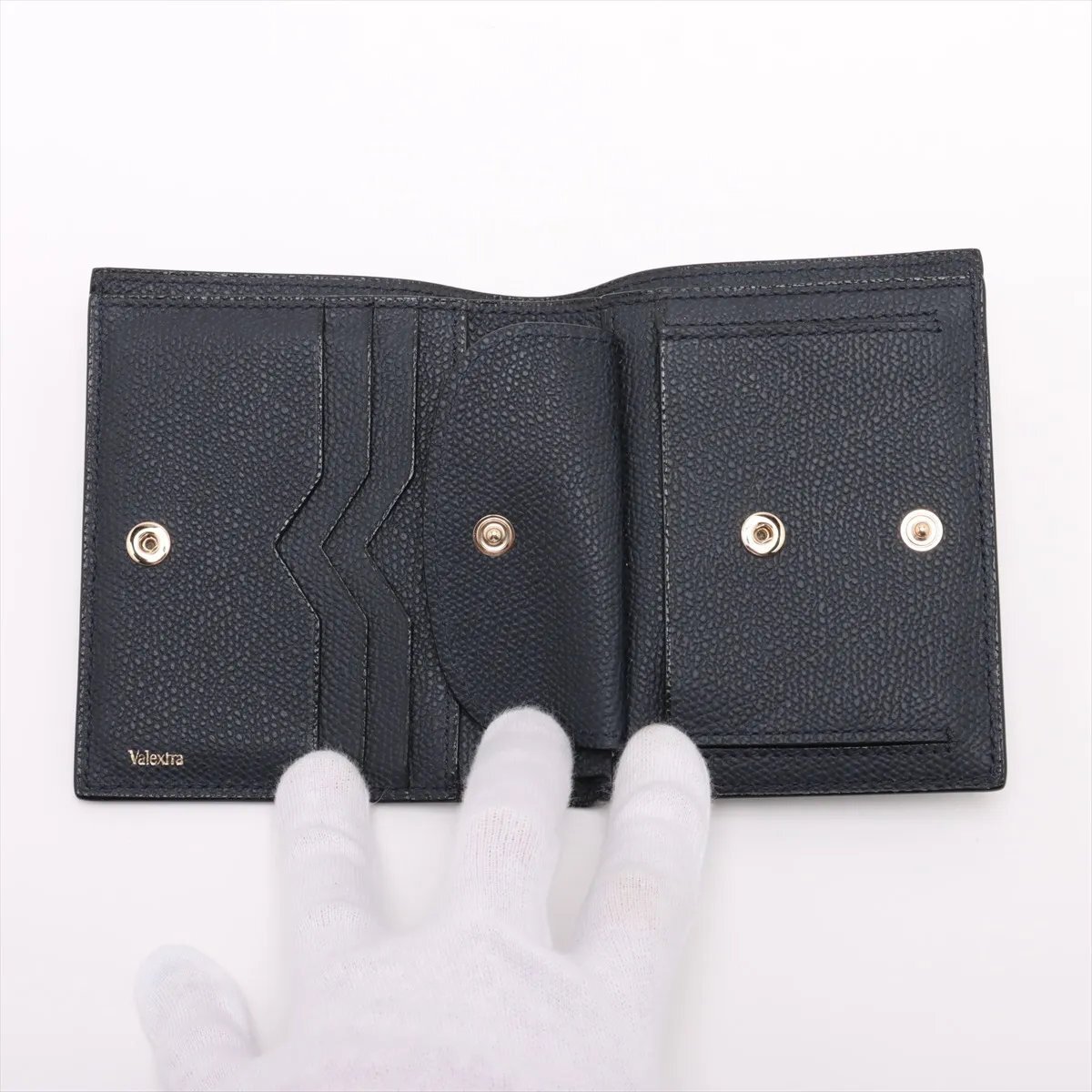 1円■美品■ヴァレクストラ■レザー 二つ折り 財布 ウォレット 本革 ネイビー 紺 ブランド メンズ MMM CU50-2