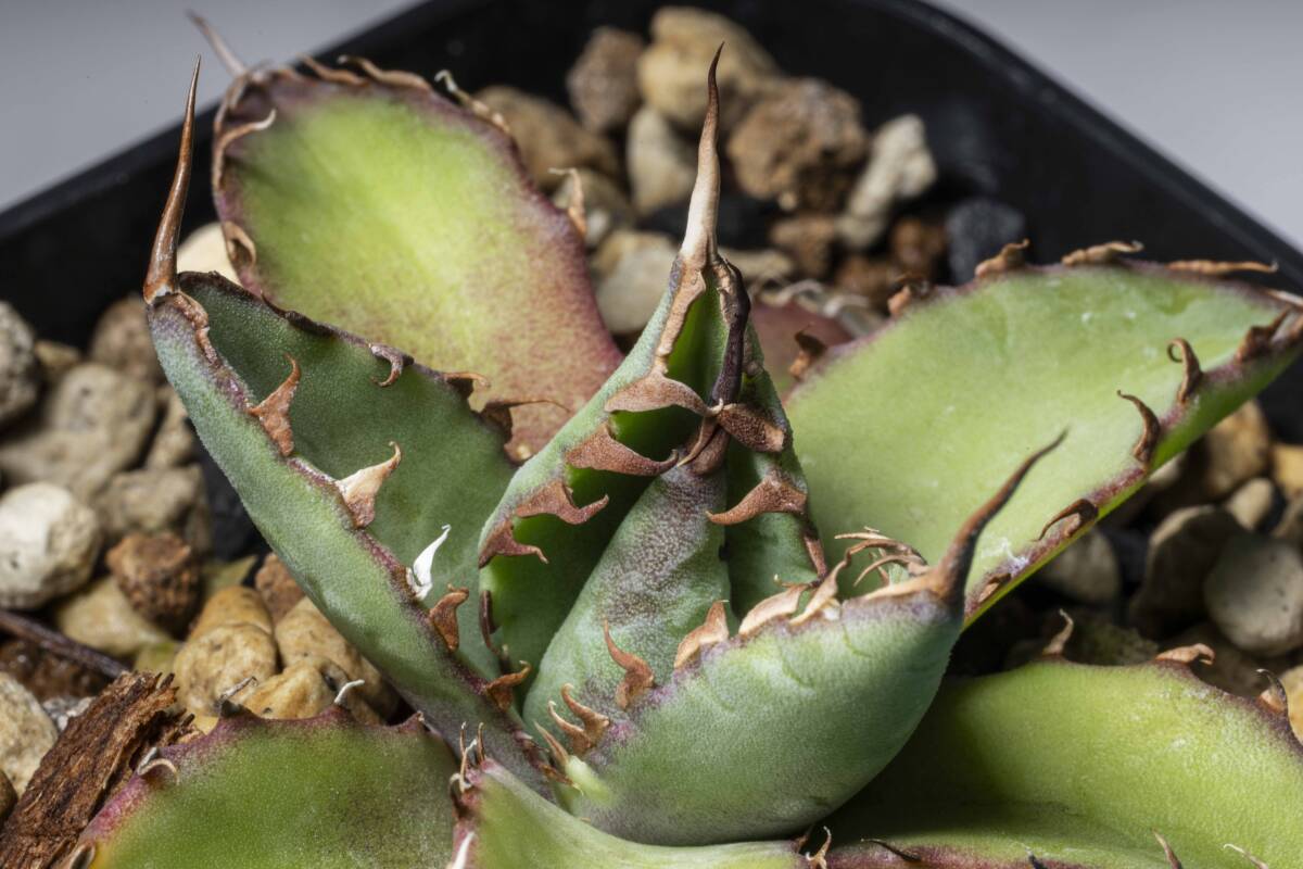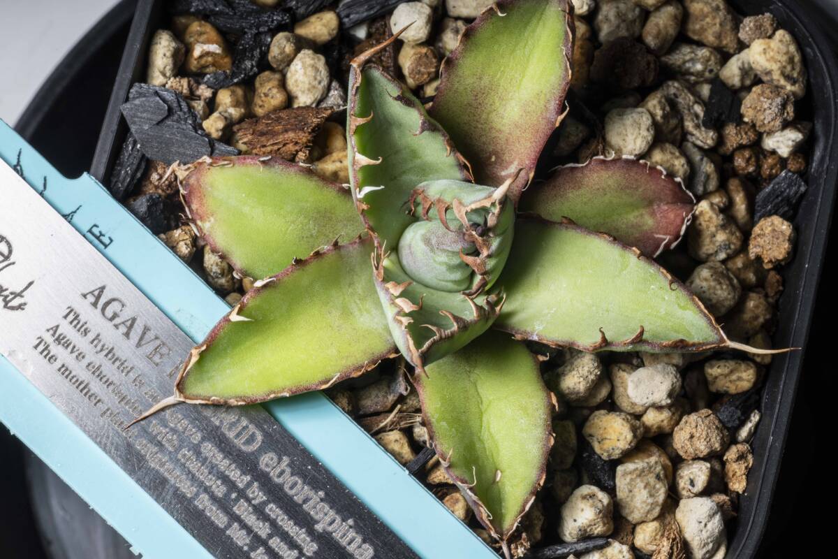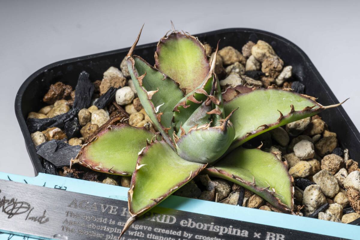 Agave エボリスピナ×BB ブラックアンドブルー ② 短葉 強棘  hybrid ハイブリッド 発根済み 植え込み発送 【gypsy.plants】