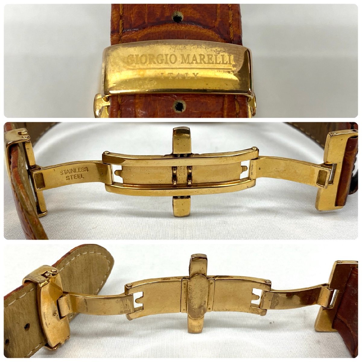 品名 | GIORGIO MARELLI ジョルジオマレリー 腕時計 3針 デイト クォーツ 文字盤ホワイト系 レザーベルト メンズ 電池交換済 |