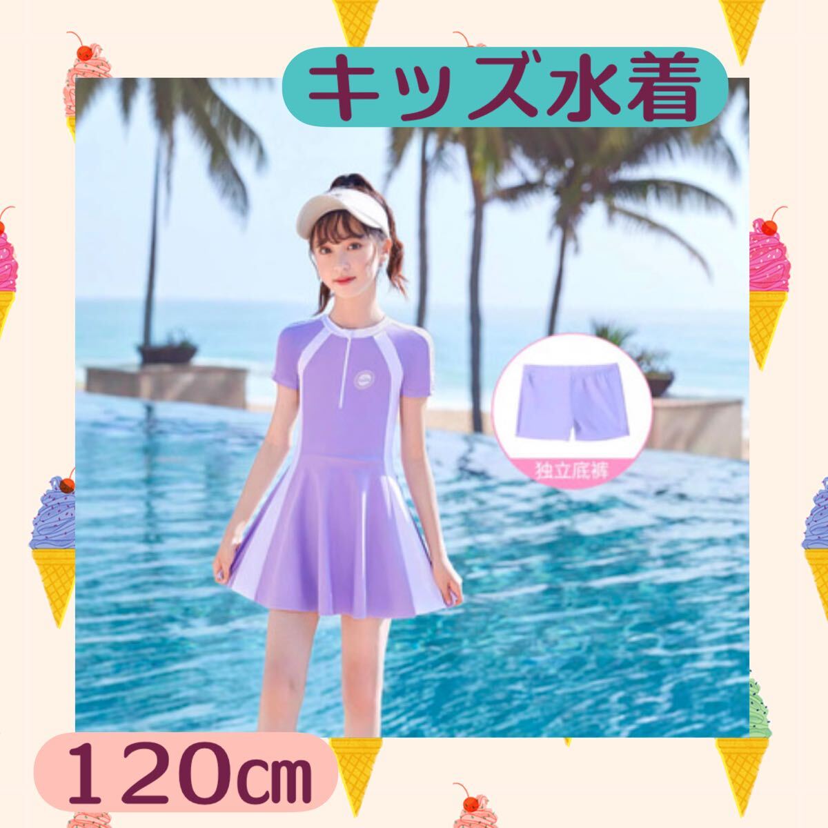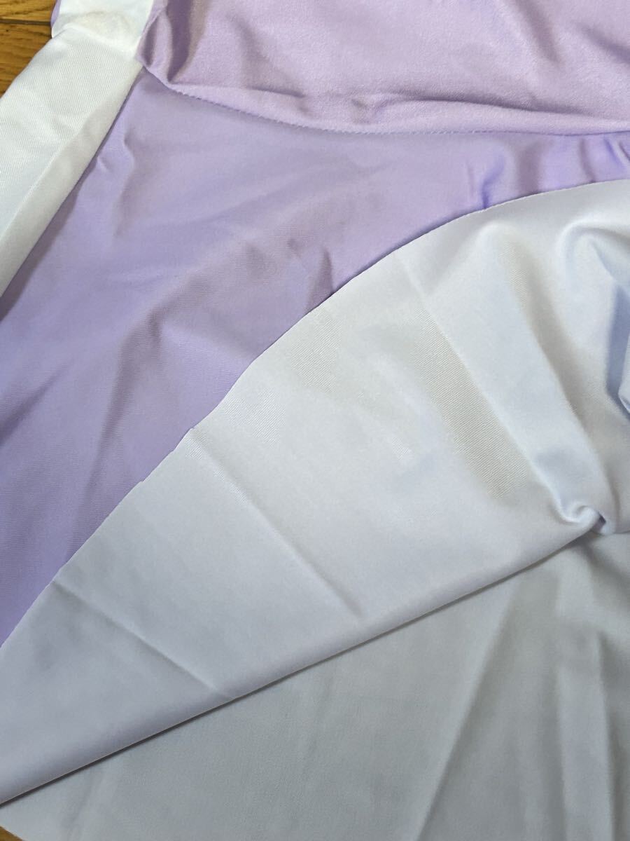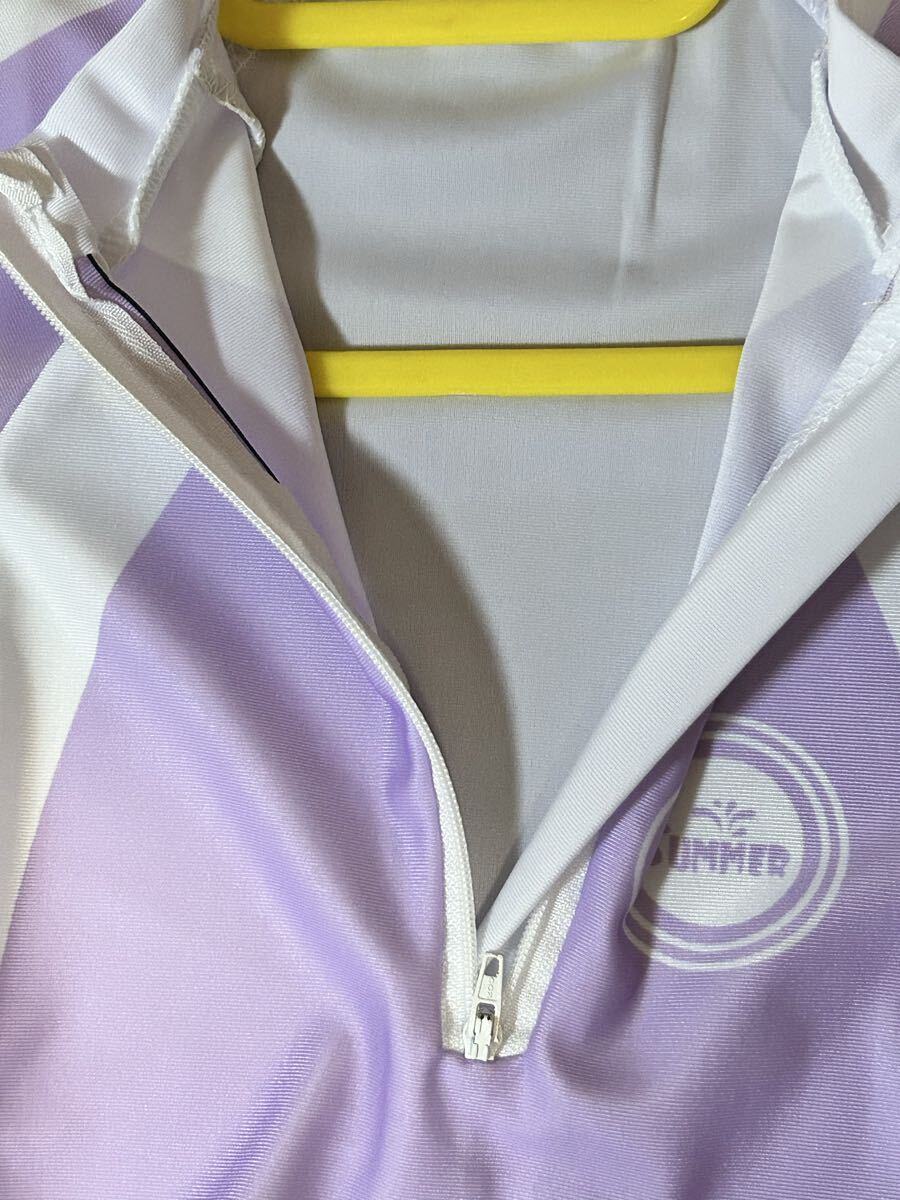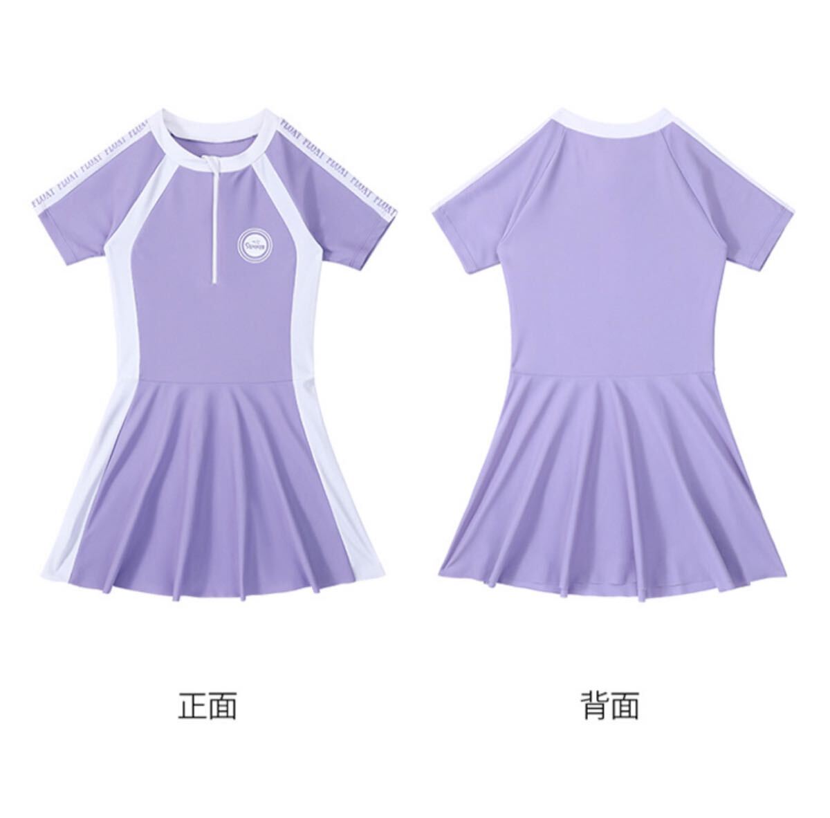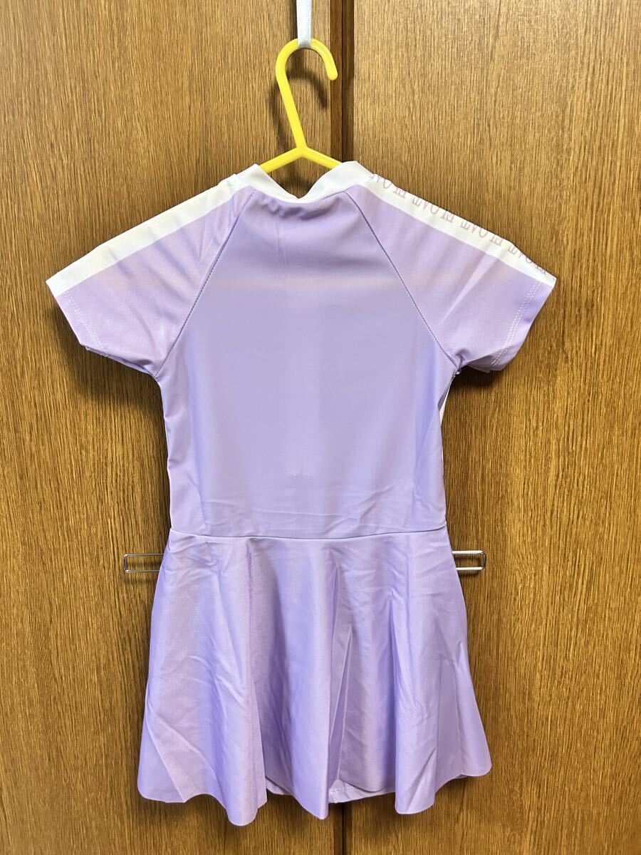 大人気カラーパープルのおしゃれなデザインのワンピース水着です。