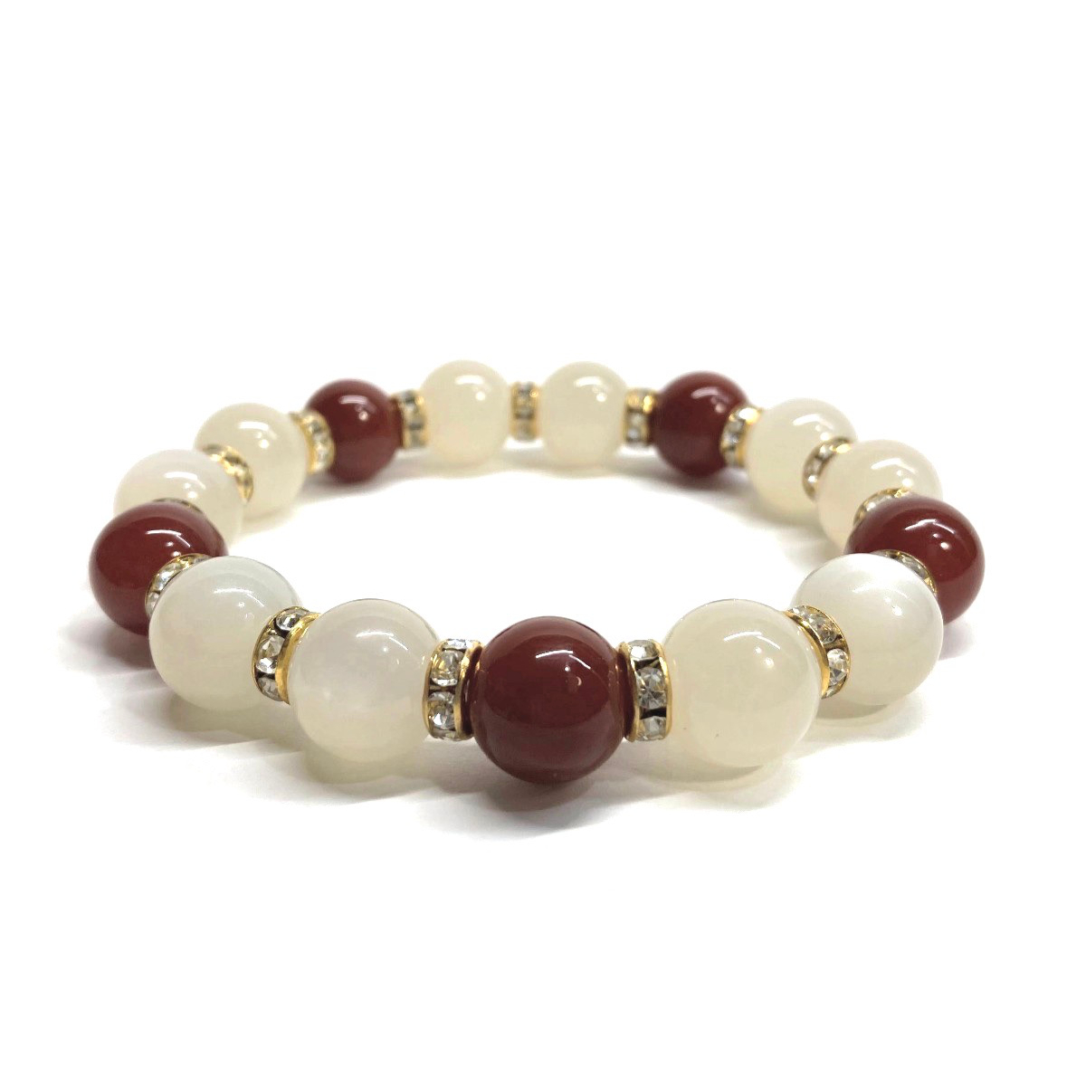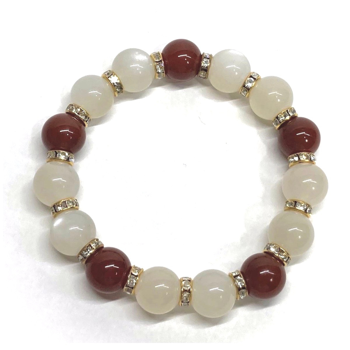 ムーンストーン&赤瑪瑙 パワーストーン ブレスレット 天然石ブレス (ゴールド) 12mm 幸運 開運 メンズ 男性♪