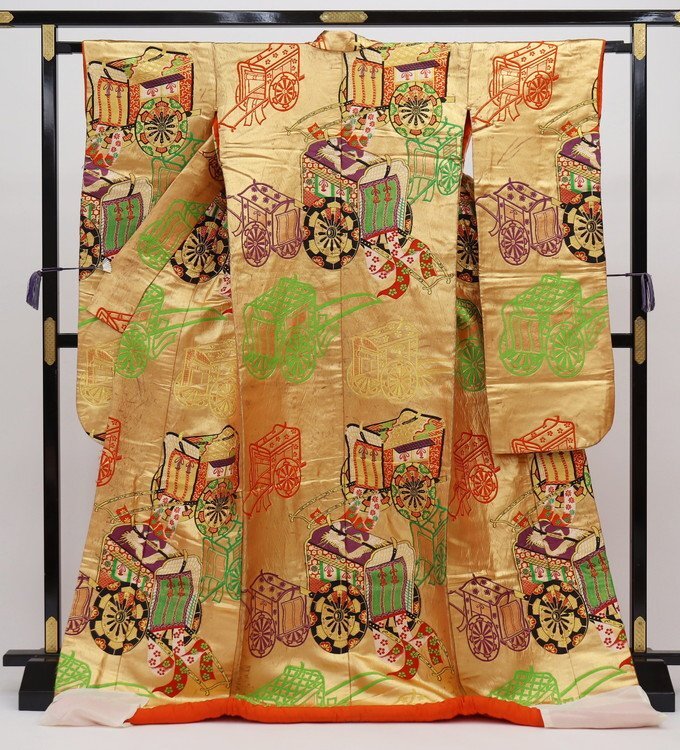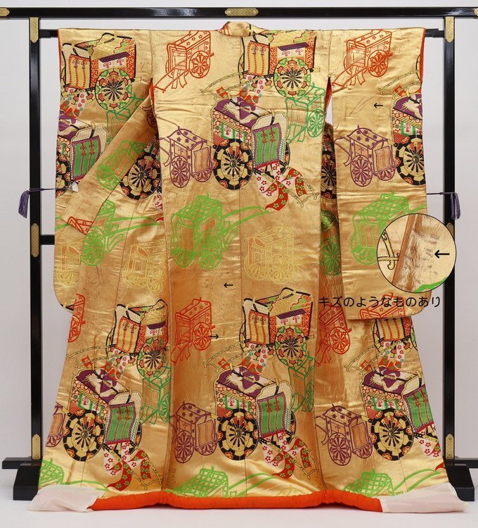 ★豪華な色打掛★ サイズ、状態は一番最後の画像をご参照ください。 和装では最高位とされているので、結婚式で 使われるのはもちろん、外国の方にも喜ばれるので、 プレゼントとしてもおススメです♪ 豪華な絵柄や刺繍は和室のインテリアの装飾としてもご利用頂けます☆ 色打掛特集ページはこちら ↓↓↓↓↓↓↓↓↓↓↓↓↓↓ 【色打掛大量出品中!!!!】 ※打掛の同梱発送は3点までとさせていただきます。 3点以上落札の場合は落札点数に応じて送料が変更になりますのでご了承お願いいたします。 ※検品のうえ商品の状態をランクで記載しておりますが、見落としによるシミや汚れがある場合がございます事をご了承下さい。 素材:一番最後の画像をご参照ください。 サイズ:一番最後の画像をご参照ください。 | |||