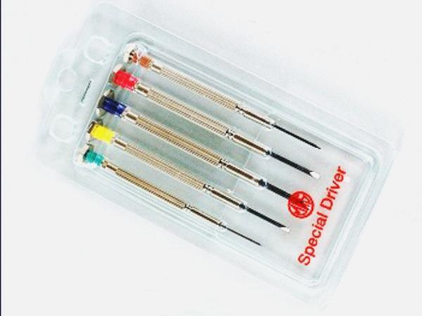 使いやすい5本組精密ドライバーでベルト調整や電池交換の時などの必需品です。 メガネの蝶番のネジの緩みにも使えます。 先端は0.5~2.0㎜までのマイナスドライバーです。 時計・メガネ専門店でも愛用されている信頼できる商品です。