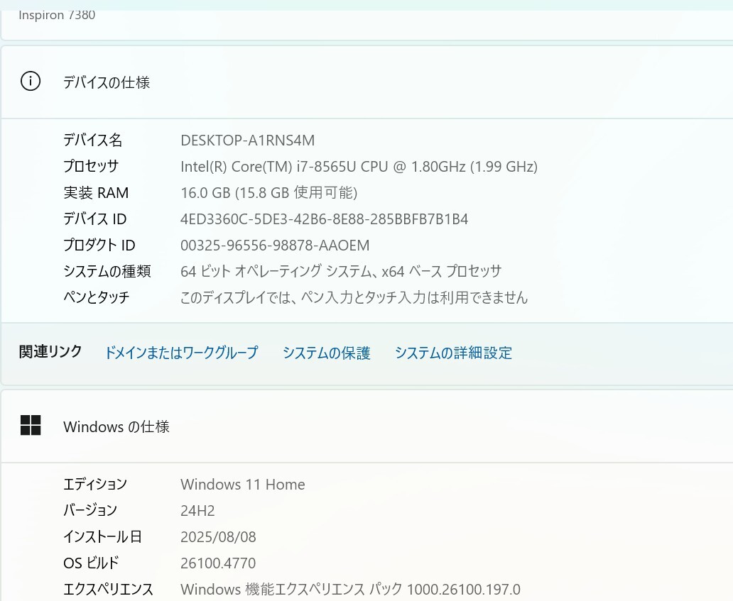 中古訳アリノートパソコン DELL Inspiron 13 7380