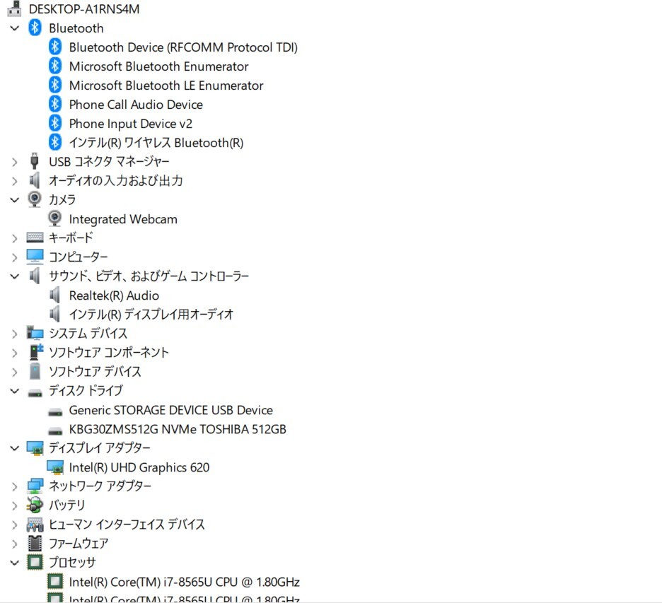 ■CPU:Intel Core i7-8565U (@1.80GHz)