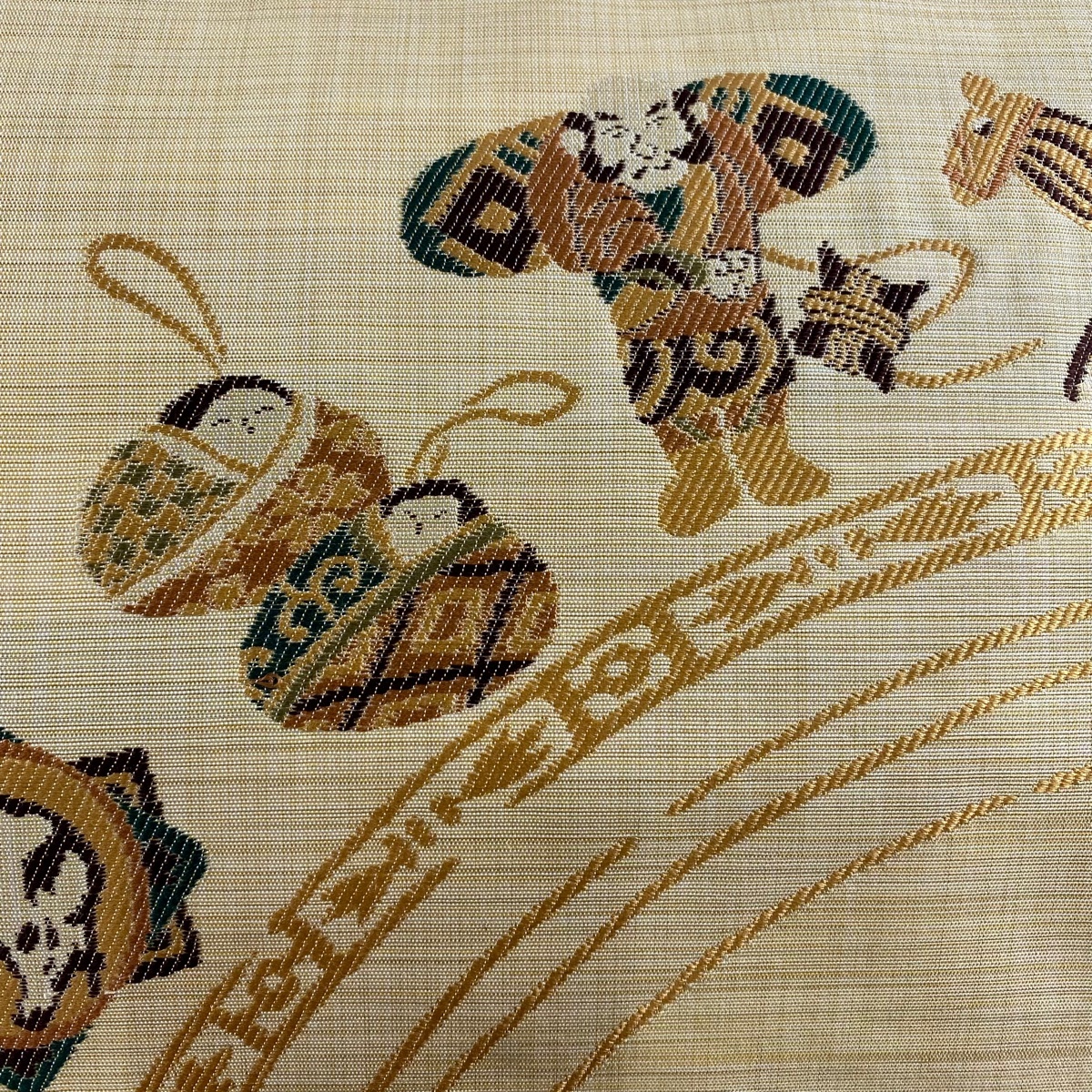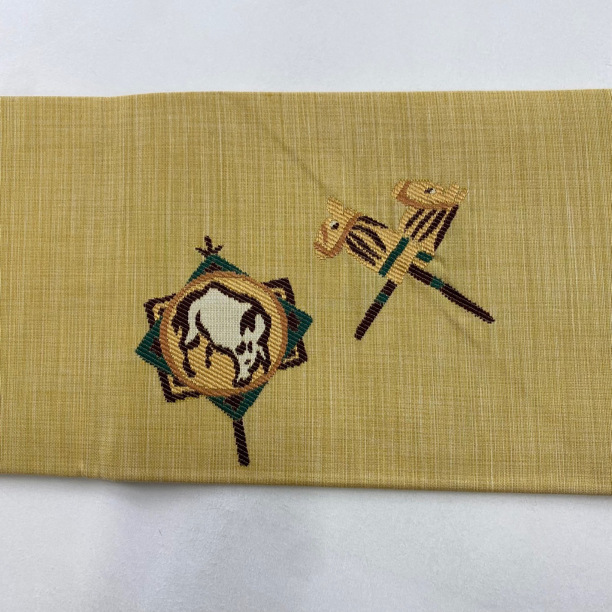 | 名古屋帯 美品 秀品 関西仕立て 紬地 玩具 風車 薄黄土色 正絹 【中古】 |