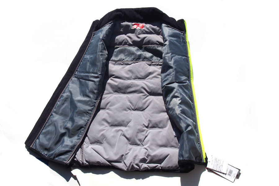 このベストは、吸湿発熱性・ 撥水性ストレッチにより、伸縮性に加え、吸湿発熱性も備えたシームレスキルト2重仕立ての機能的なアイテムです。