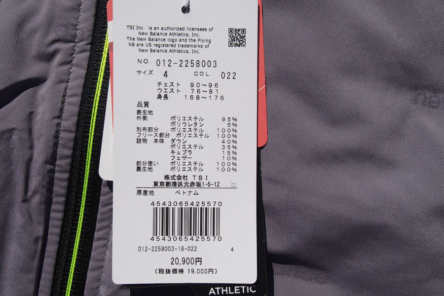 <素材>表生地(外側)ポリエステル95%、ポリウレタン5%、(別布部分)ポリエステル100%、(フリース部分)ポリエステル100%、(詰物)ダウン40%、ポリエステル35%、キュプラ15%、フェザー10%