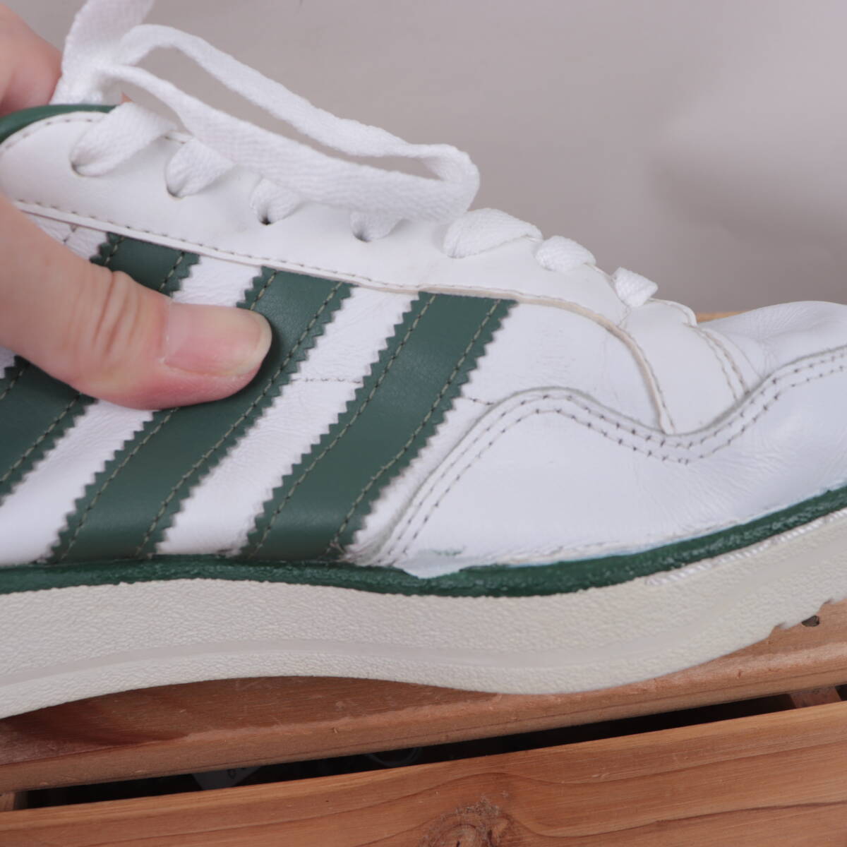 z2377 アディダス チームコート US8 1/2 26.5cm/白 ホワイト グリーン adidas Team Court メンズ スニーカー 中古