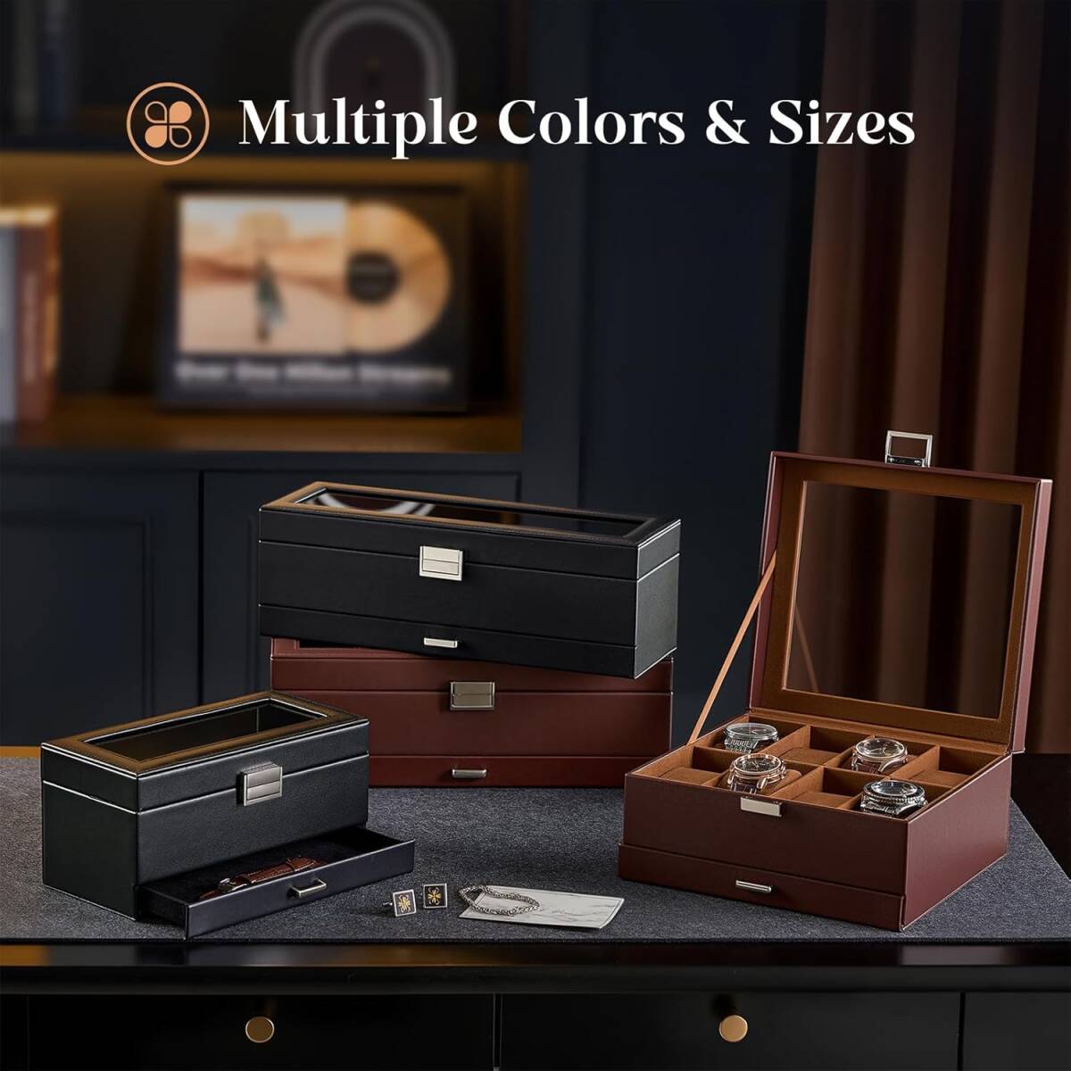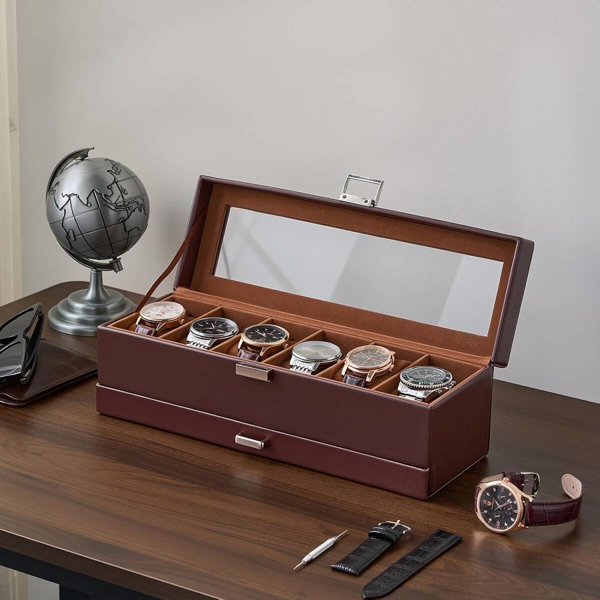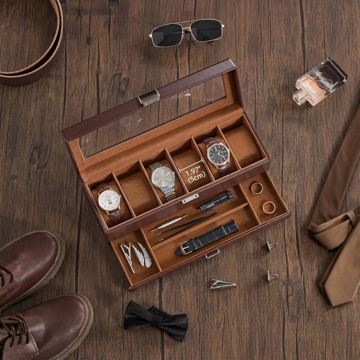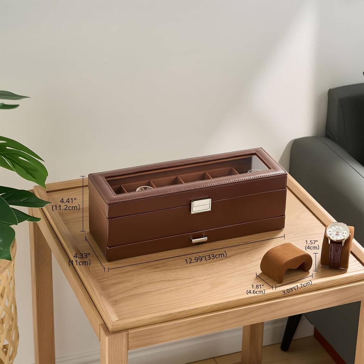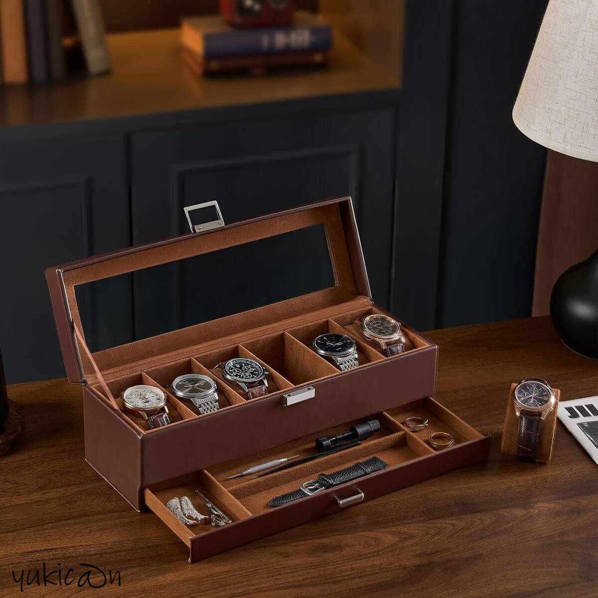 腕時計ケース 6本 エスプレッソ PU製 2段式 ウオッチボックス 収納ボックス アクセサリーケース 男女兼用 アクセサリー 収納 ディスプレイ