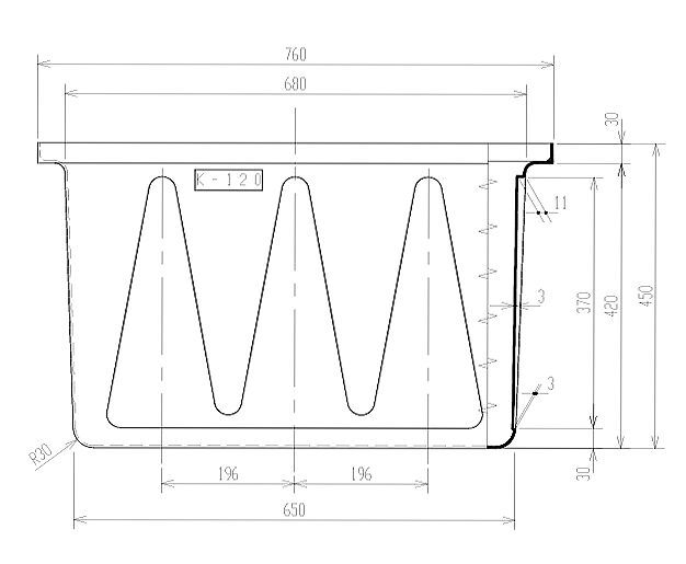 角部が肉厚な頑丈な構造 K型専用のフタもございます。