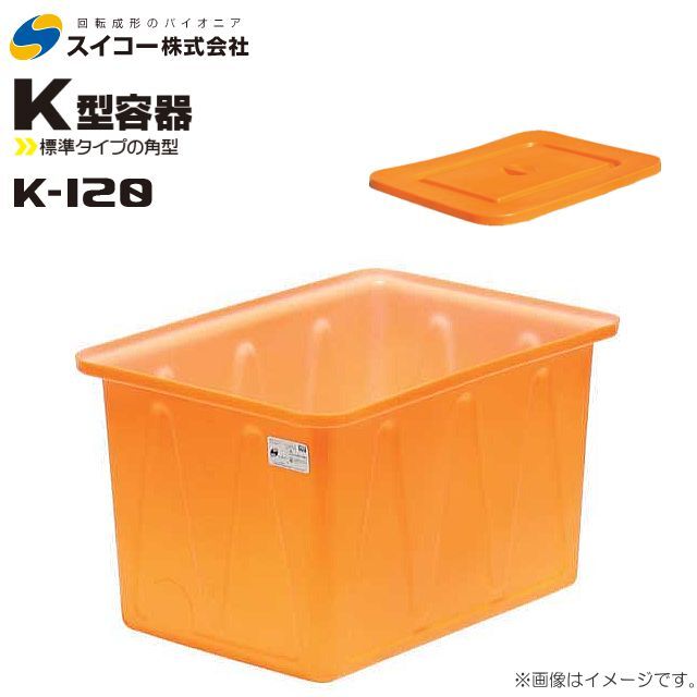 スイコー 角型容器 K型 K-120 120L オレンジ 専用フタ付き 目盛り付 角槽 農作物 水産物 出荷仕分 [個人様宅配送不可]